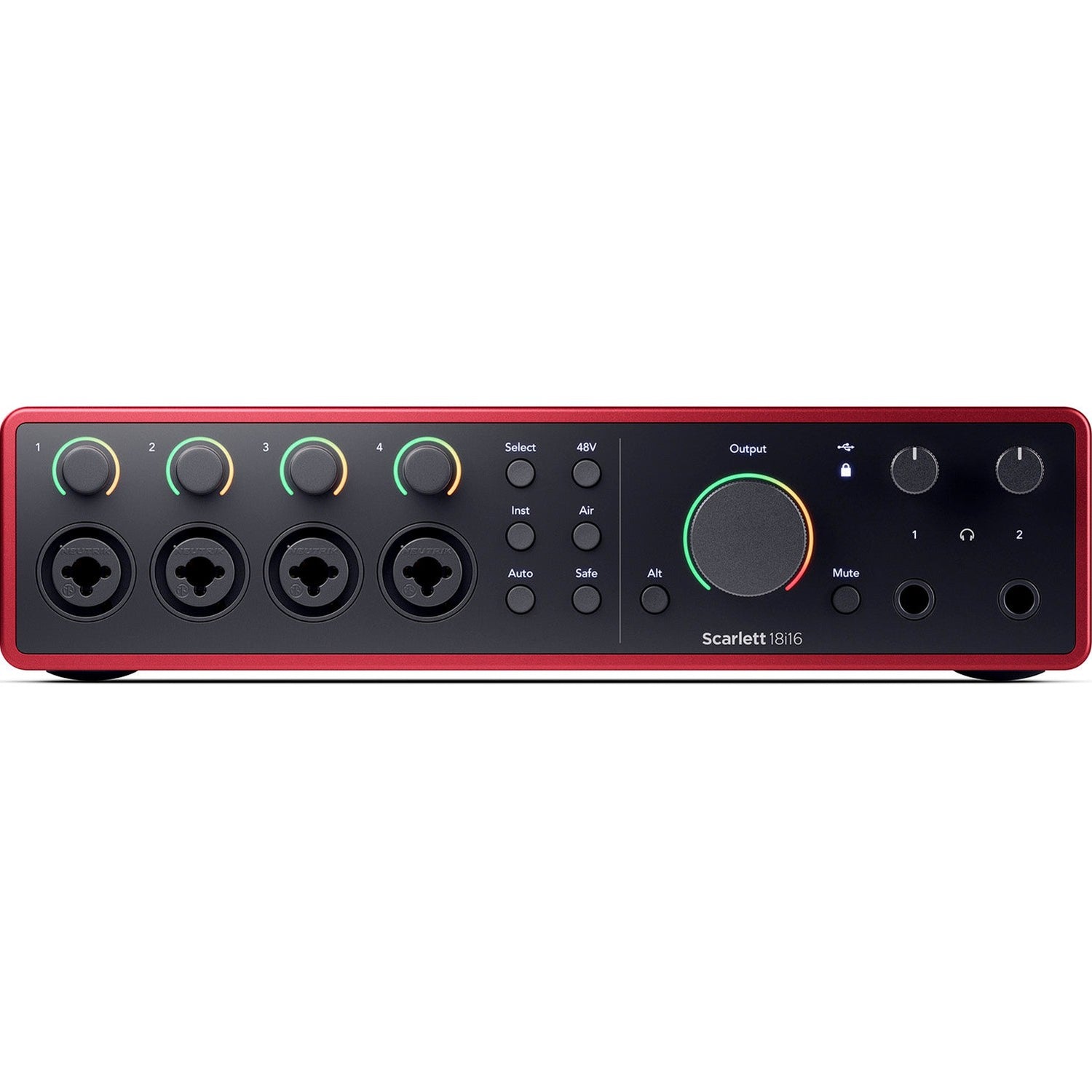 Das Focusrite Scarlett 18i16 der 4. Generation ist ein vielseitiges Audio-Interface mit sage und schreibe 18 physischen Ein- und Ausgängen – ideal für Produzenten, Bands oder kleine Studios, die mehrere Audioquellen gleichzeitig aufnehmen möchten. Mit vier Scarlett-Mikrofonvorverstärkern (inklusive 69 dB Verstärkung und +48 V Phantomspeisung) und digitalen Erweiterungsmöglichkeiten über ADAT und S/PDIF bietet dieses Interface 20 x 18 simultane Audiokanäle , inklusive Loopback . Die hochwertigen Focusrite-Wandler liefern eine Auflösung von bis zu 24 Bit/192 kHz mit einem beeindruckenden Dynamikumfang von 122 dB . Fortschrittliche Aufnahmefunktionen wie Auto Gain , Clip Safe , Air-Modus mit Presence & Harmonic Drive und eine dynamische Pegelanzeige machen dieses Interface äußerst professionell und benutzerfreundlich.