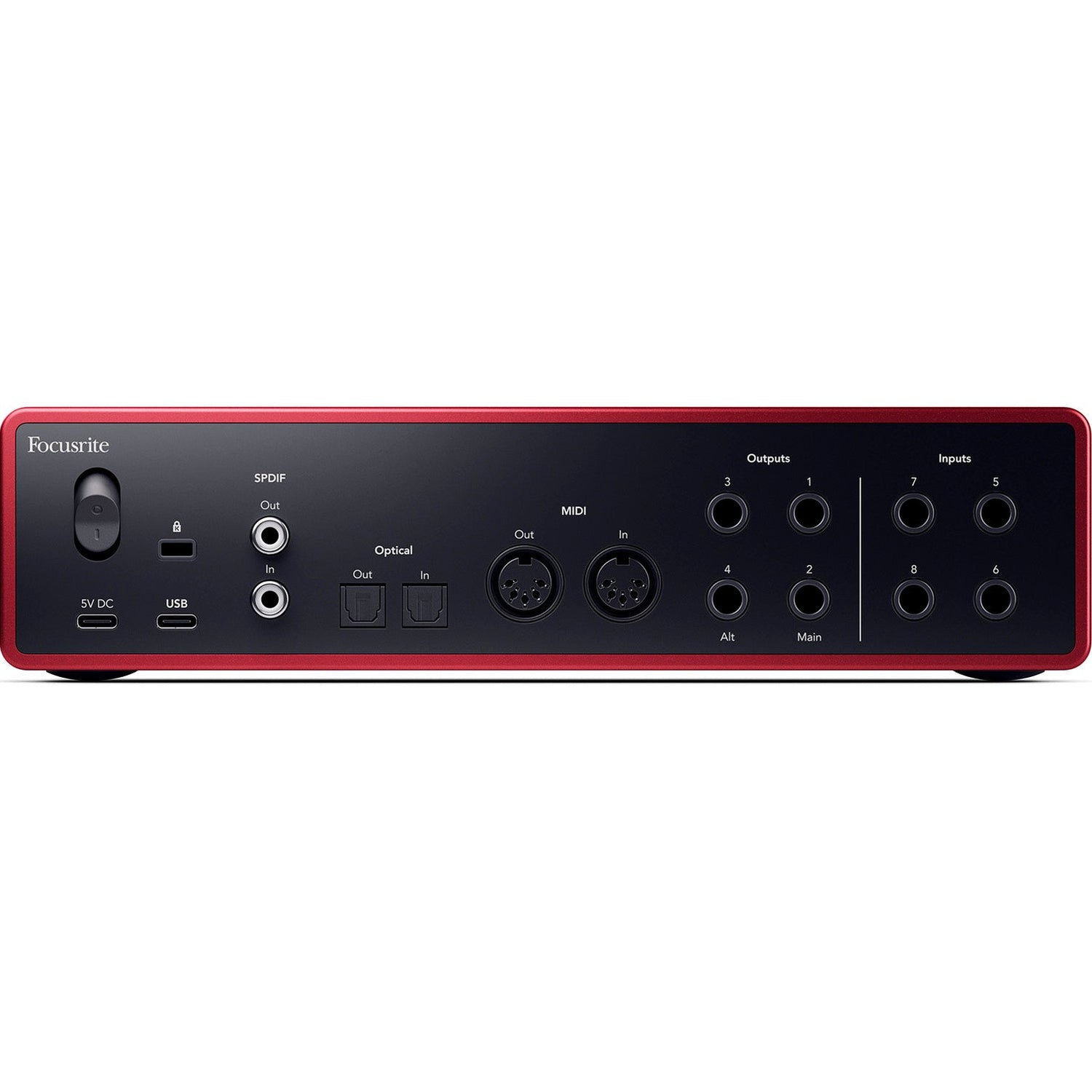 - Mikrofonvorverstärker: 4 Scarlett-Vorverstärker mit 69 dB Verstärkung