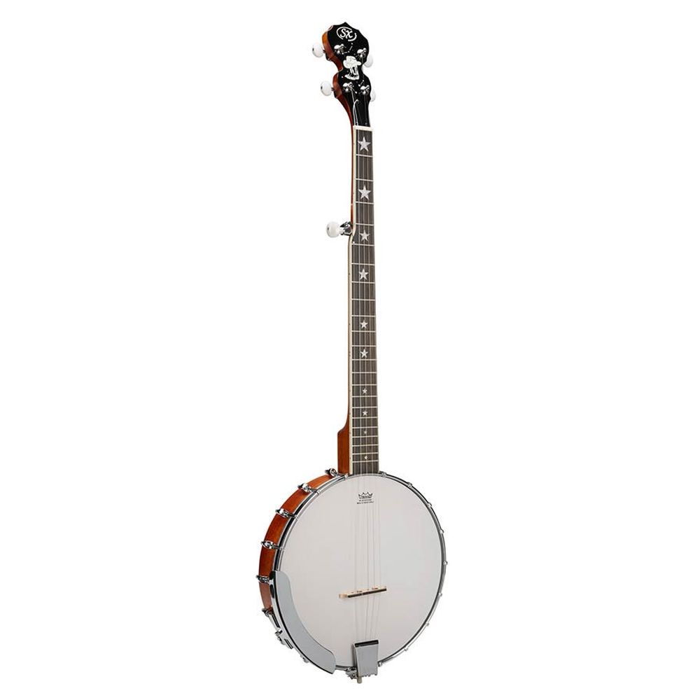 Das SX BJ305TK ist ein vielseitiges 5-saitiges Open-Back-Banjo, ideal für Anfänger und Fortgeschrittene, die einen traditionellen Klang mit moderner Zuverlässigkeit suchen. Mit seinem natürlichen, matten Finish und den weißen, sternförmigen Griffbretteinlagen besticht dieses Banjo durch seinen klassischen Stil. Die Mensur von 670 mm und der 30 mm breite Sattel sorgen für ein komfortables Spielgefühl, während das Remo-Banjofell und der Okoumé-Kessel zu einem hellen, offenen Klang beitragen.