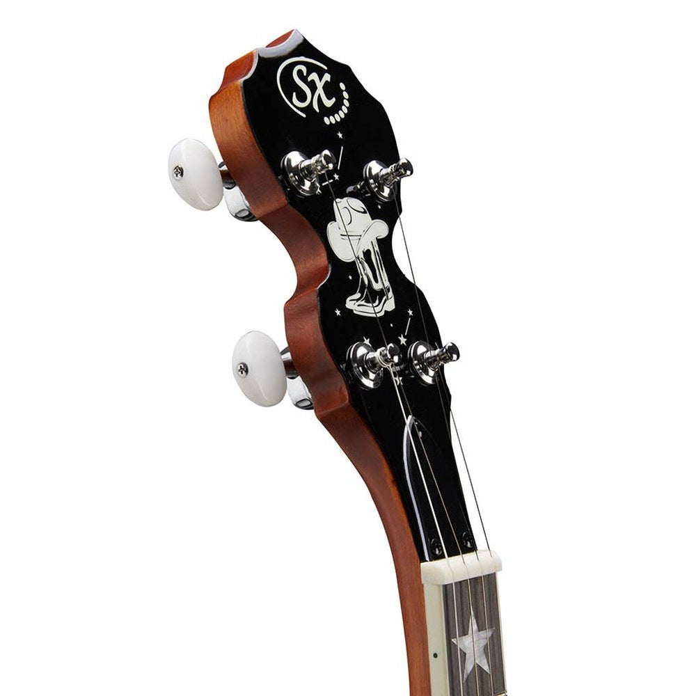 SX BJ305TK 5-saitiges Open-Back-Banjo – Natur-Satin, inklusive Tasche, Plektren, Gurt und Stimmgerät