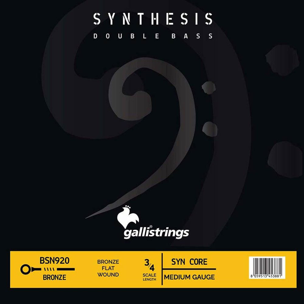 Galli BSN-920 3/4 Kontrabass-Satz, Synthetikkern und Bronze 80/20 Flatwound-Saiten, Medium