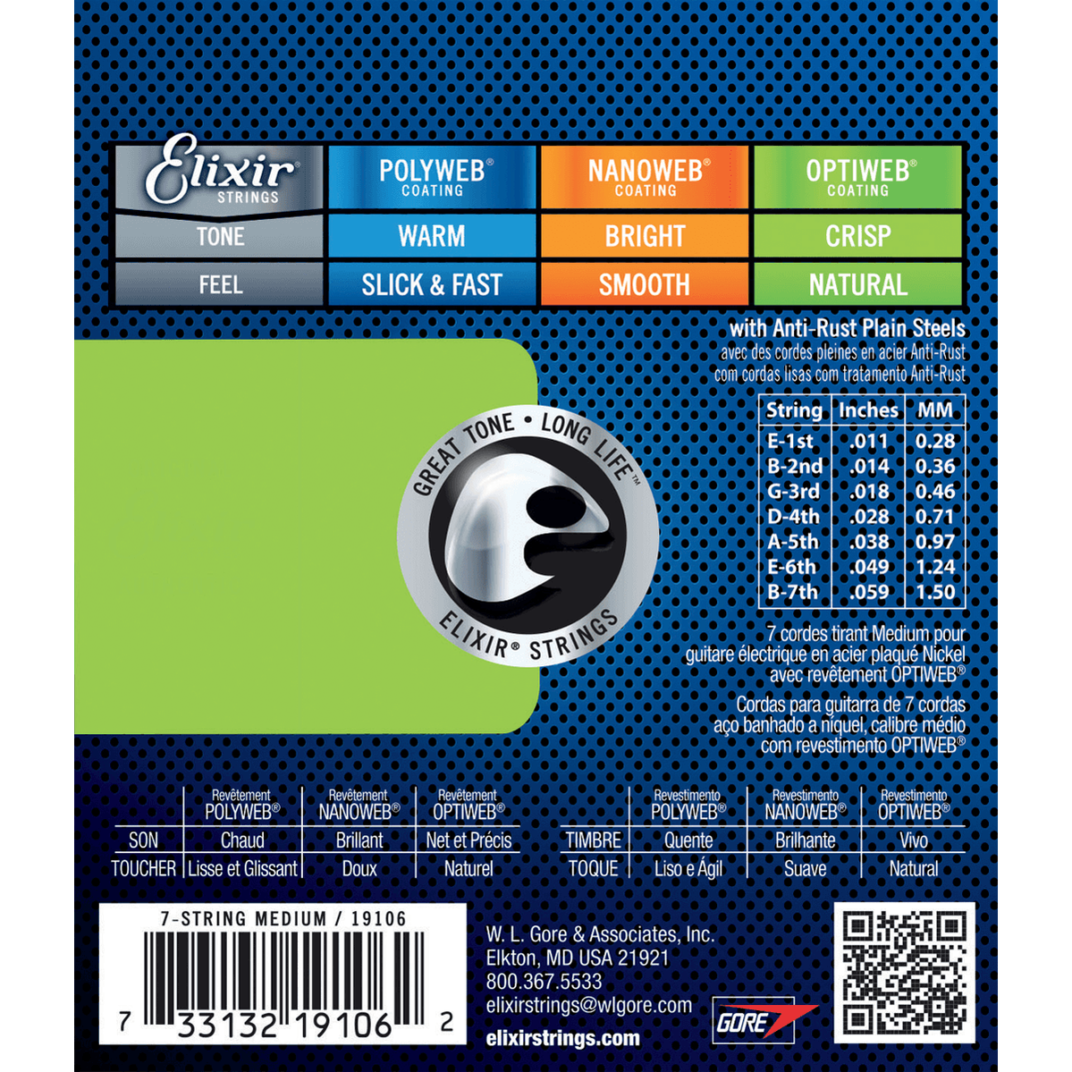 Der Elixir 19106 ist ein 7-saitiger E-Gitarrensaitensatz in der Medium-Version (011-059) mit der hochwertigen OPTIWEB®-Beschichtung. Diese Beschichtung vereint das helle, natürliche Spielgefühl unbeschichteter Saiten mit der Langlebigkeit und dem Schutz vor Korrosion, Schmutz und Schweiß, die Elixir-Saitensätze so zuverlässig machen. Der Klang bleibt auch nach längerem Gebrauch lebendig und kraftvoll.