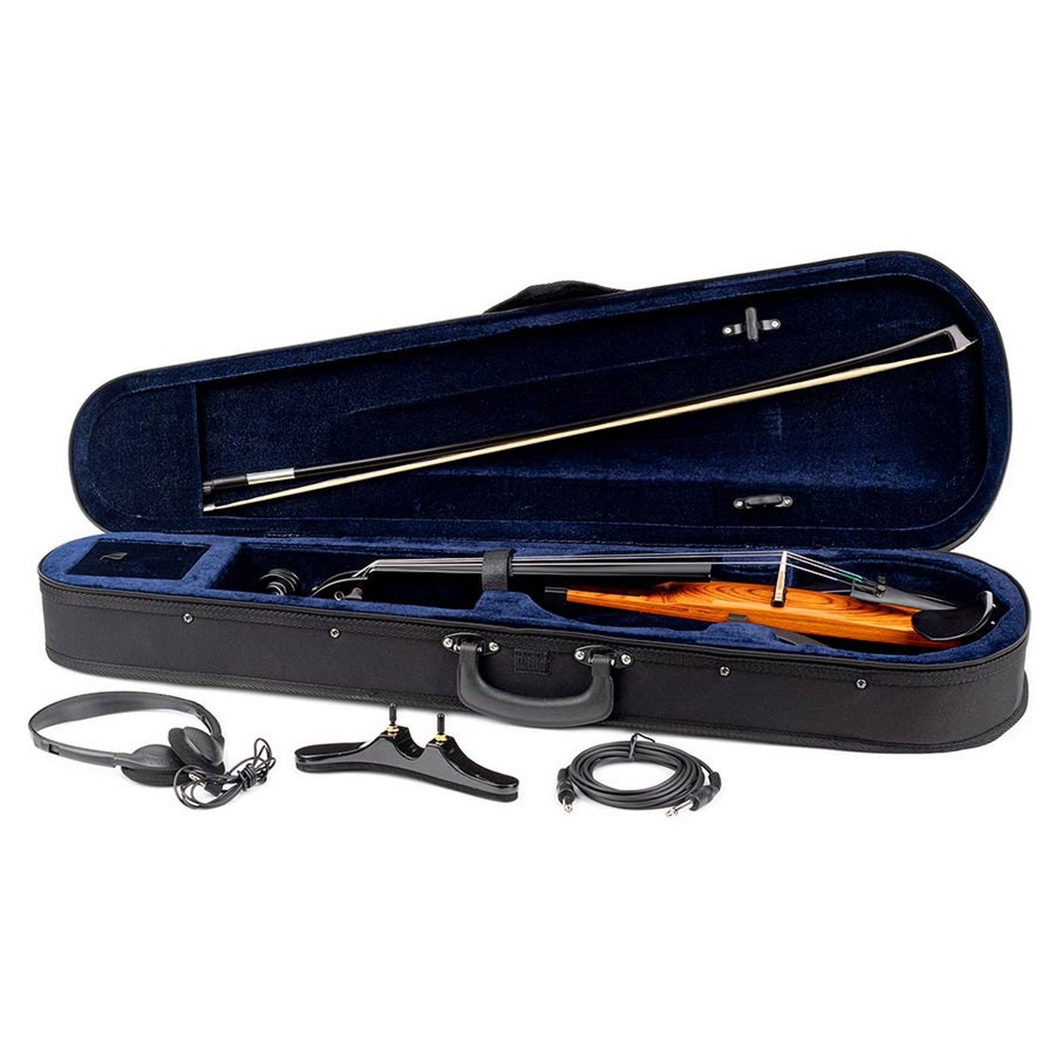 Leonardo EV-40-NT E-Violine im modernen Design, Vorverstärker, mit Bogen, Koffer, Kopfhörer, Schulterstütze, natur