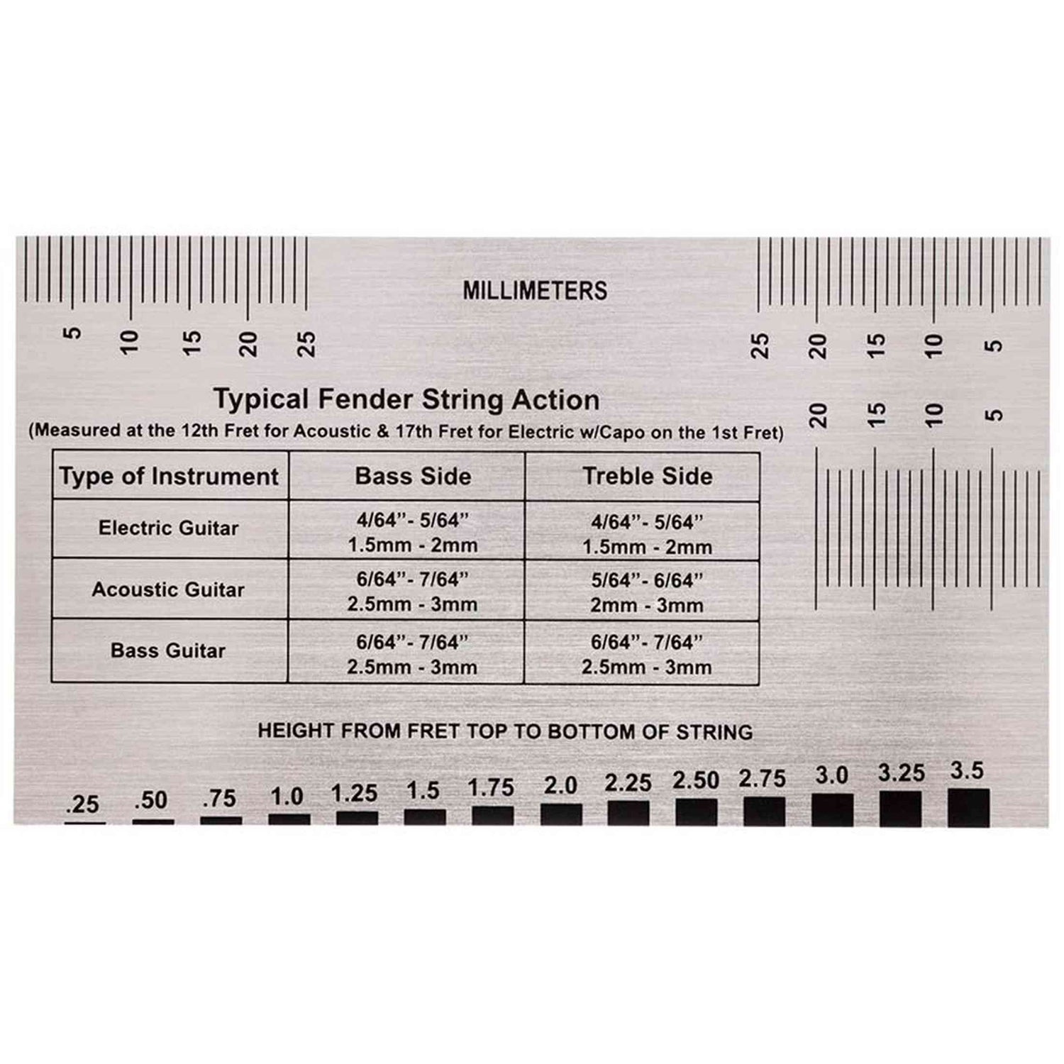 Fender 0990654050 Saitenlagelehre Edelstahl Zoll und mm Messwerkzeug