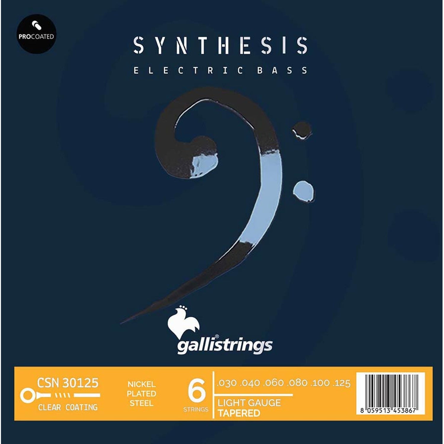 Galli CSN-30125 6-Saiter-Satz E-Bass, beschichtete vernickelte Stahlwicklung, leicht, 030-040-060-083-100-125