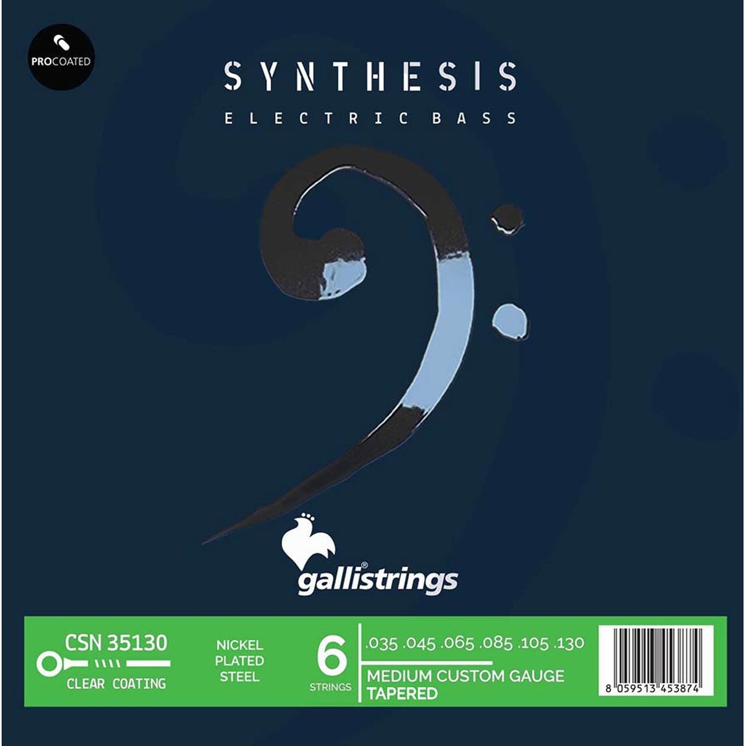 Galli CSN-35130 6-saitiges E-Bass-Set, beschichtete vernickelte Stahlwicklung, 035-045-065-085-105-130