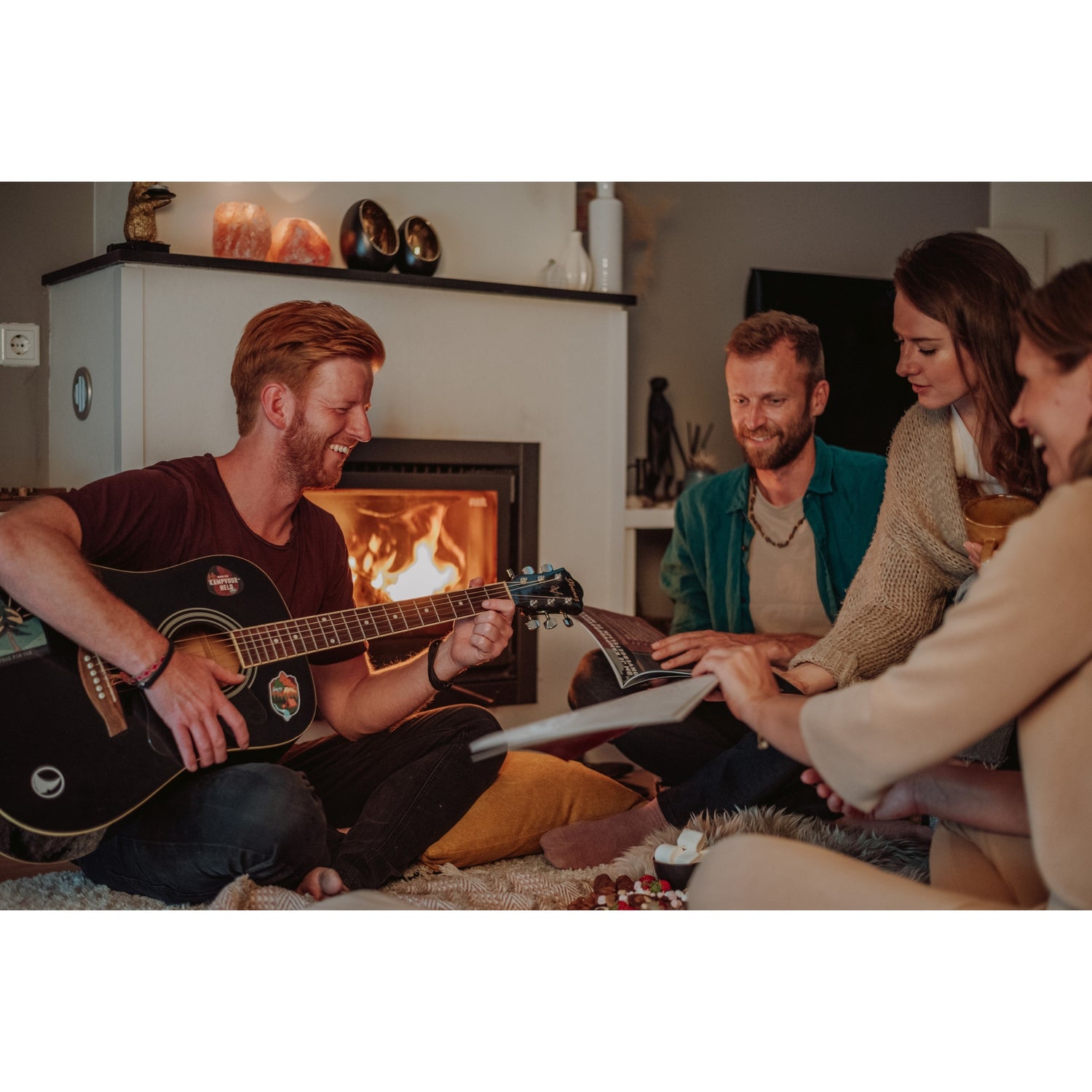 „Haardvuurheld“ ist das ultimative Gitarrenbuch für die kalte Jahreszeit. Es enthält 20 beliebte Top-2000-Songs, die das gemütliche Gefühl perfekt einfangen, mit Gitarre und heißer Schokolade zu Hause zu sitzen. Von „Let It Be“ bis „Evening “ wecken diese Lieder Erinnerungen und eignen sich ideal zum gemeinsamen Musizieren am Kamin. Die Kombination aus Akkorden, Noten und bekannten Melodien sorgt dafür, dass du im Handumdrehen mitspielen kannst – auch wenn du noch nicht viel Erfahrung hast.