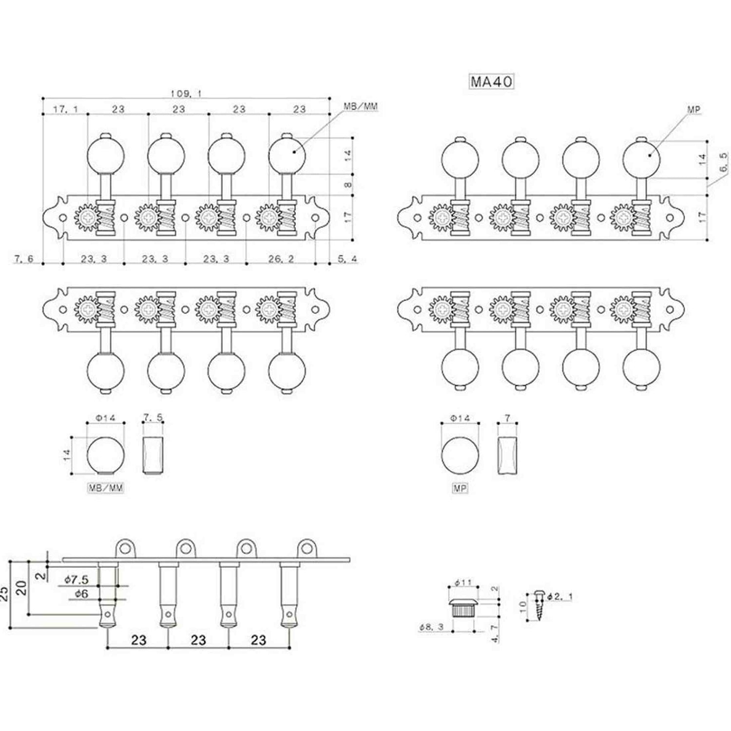 Diese Version besticht durch ihre goldene Oberfläche und die schwarzen MB-Knöpfe. Das verleiht Ihrer Mandoline ein elegantes und luxuriöses Aussehen. Die Mechanik ist robust und hält die Saitenspannung gut, sodass Sie seltener stimmen müssen.