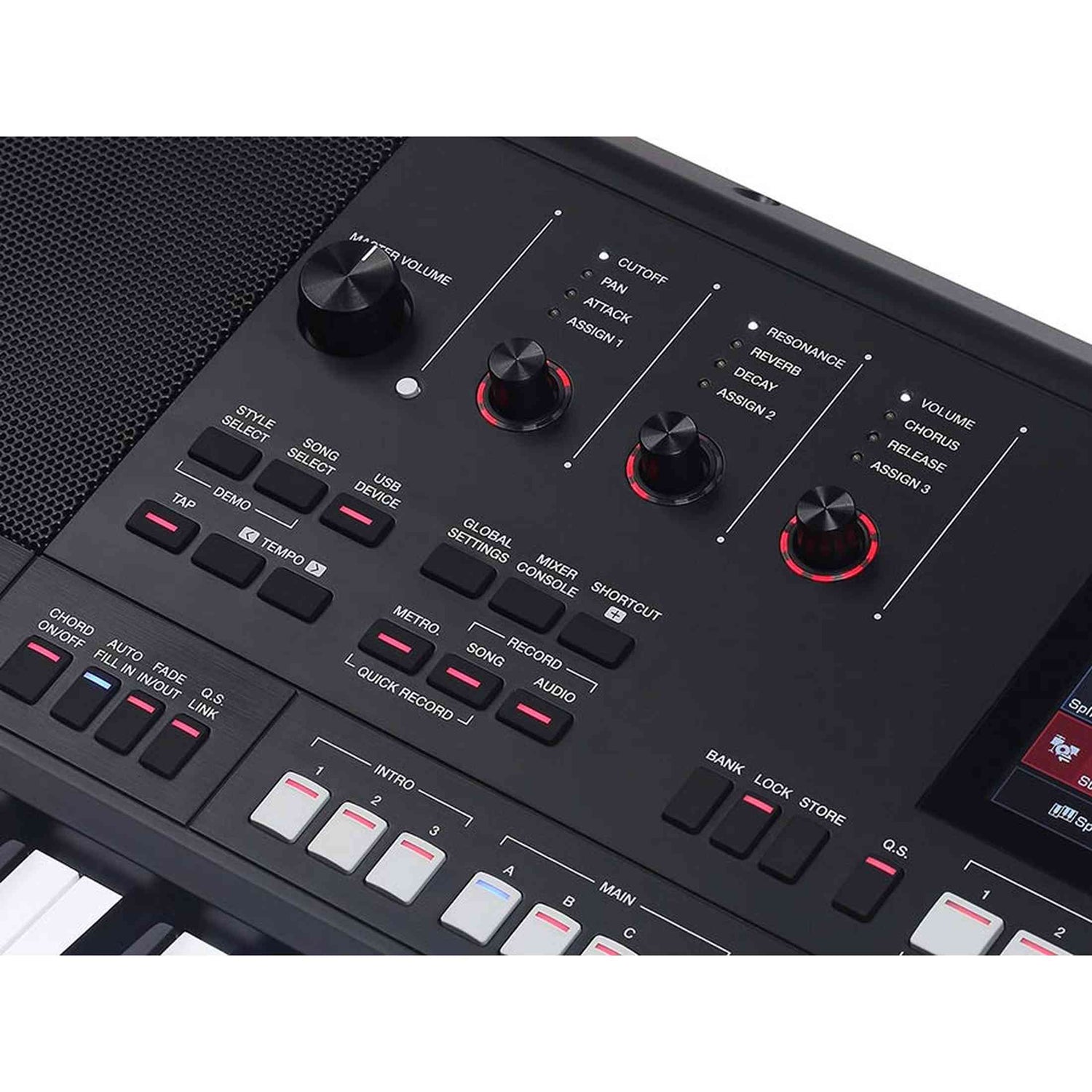 Das integrierte 4-Wege-Lautsprechersystem (2 x 15 W und 2 x 25 W) liefert detailreichen Klang in brillanter Klarheit. Die beleuchtete Atemlichtanzeige und der Joystick ermöglichen zusätzliche visuelle und Echtzeit-Steuerung. Zusätzlich bietet die Workstation Bluetooth MIDI und Audio, Aufnahmefunktionen, die Möglichkeit zur Stilerstellung und zahlreiche Optionen für Live-Auftritte. Dank erweiterbarem Speicher und einer umfassenden Effektsuite eignet sie sich ideal für Bühne, Studio und Zuhause.