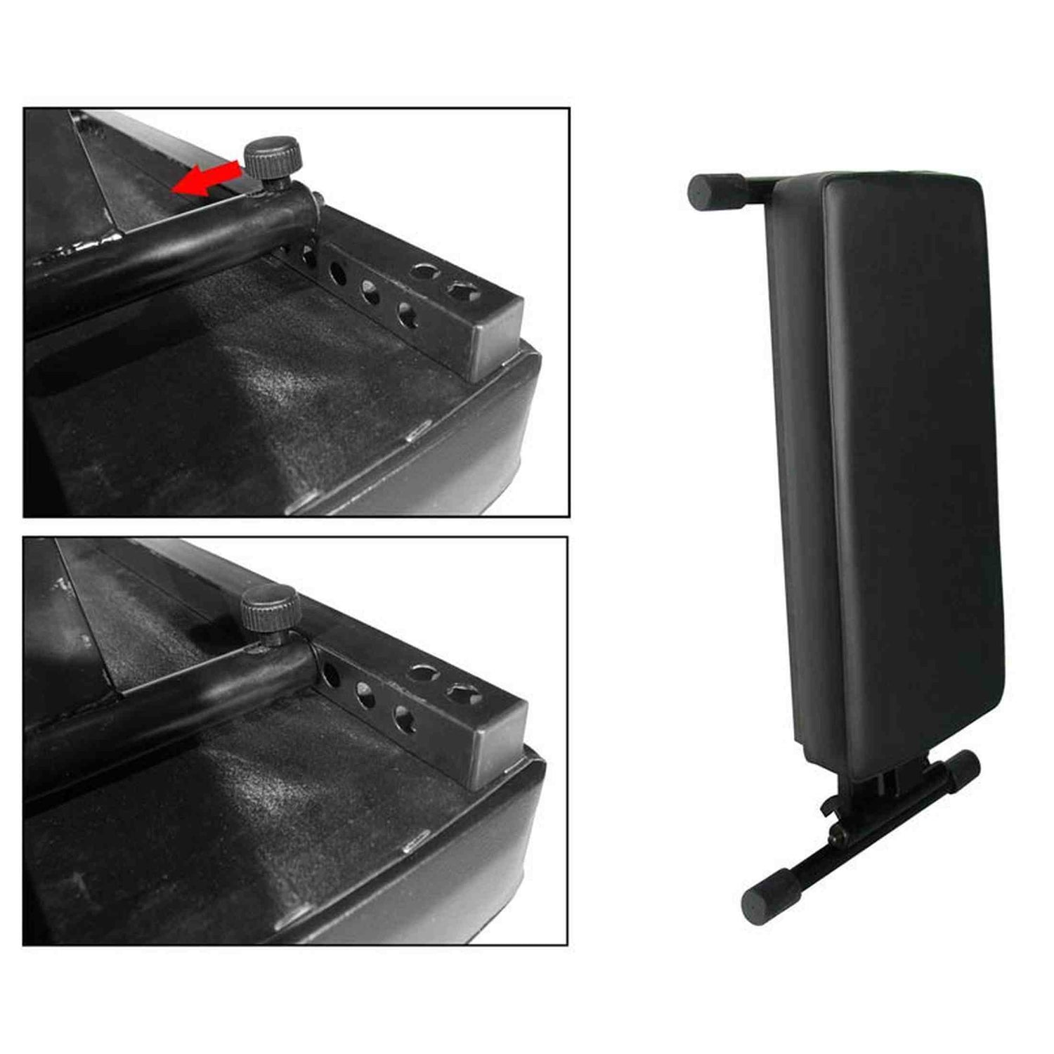 Der 53 x 24 cm große Sitz ist mit einem schwarzen Lederimitat bezogen und komfortabel gepolstert. Dank seiner Verstellbarkeit, des hohen Komforts und der robusten Konstruktion ist der OB-90 eine zuverlässige Wahl für Zuhause, Bühne oder Klassenzimmer.