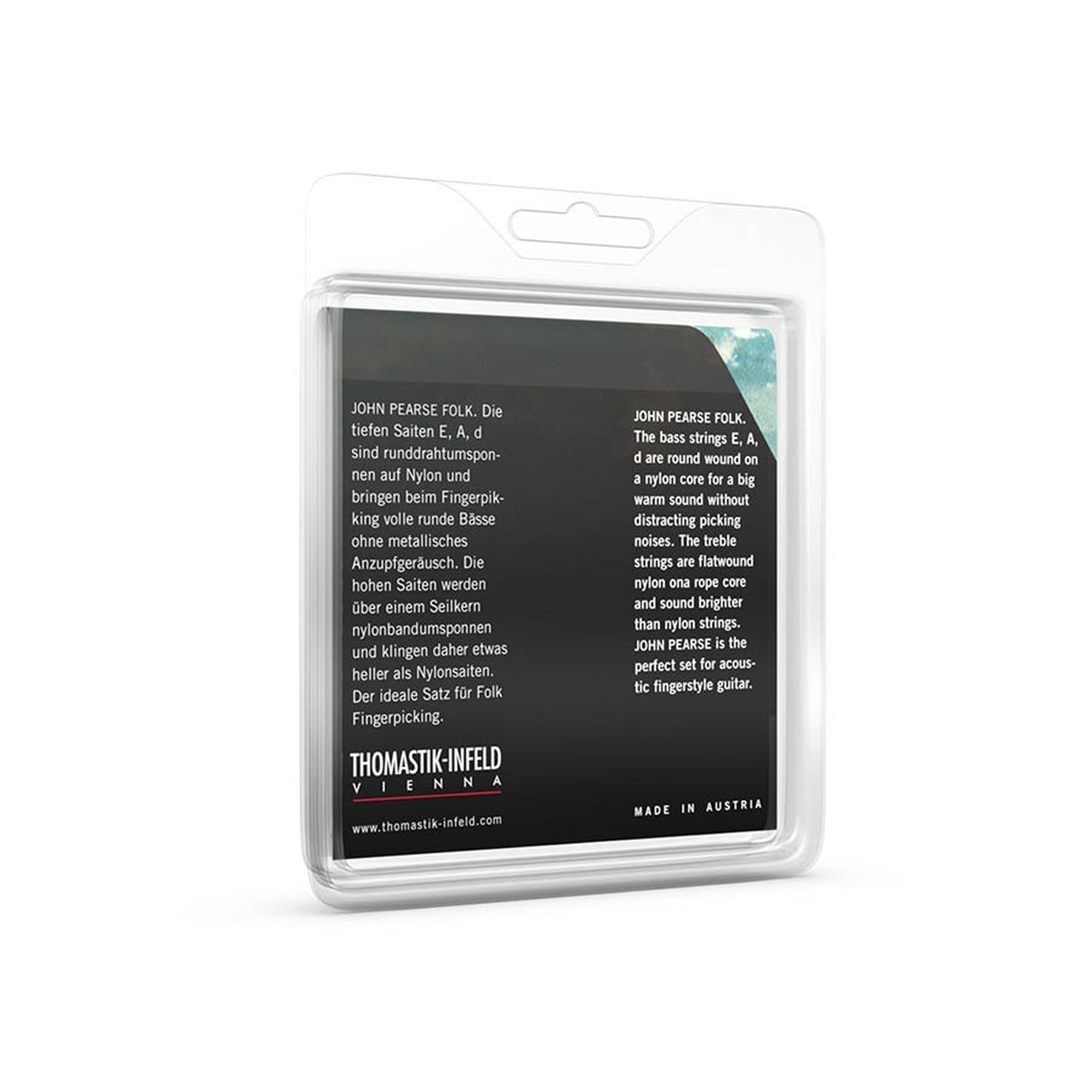 Thomastik Infeld THPJ-116 Saitensatz Folk, EBG Nylon Flatwound Die Basssaiten E, A, D sind rund umwickelt auf einem Nylonkern für einen großen, warmen Klang ohne störende Anschlagsgeräusche. Die Diskantsaiten bestehen aus flach gewickeltem Nylon auf einem Seilkern und klingen heller als Nylonsaiten. JOHN PEARSE ist das perfekte Set für akustische Fingerstyle-Gitarre.