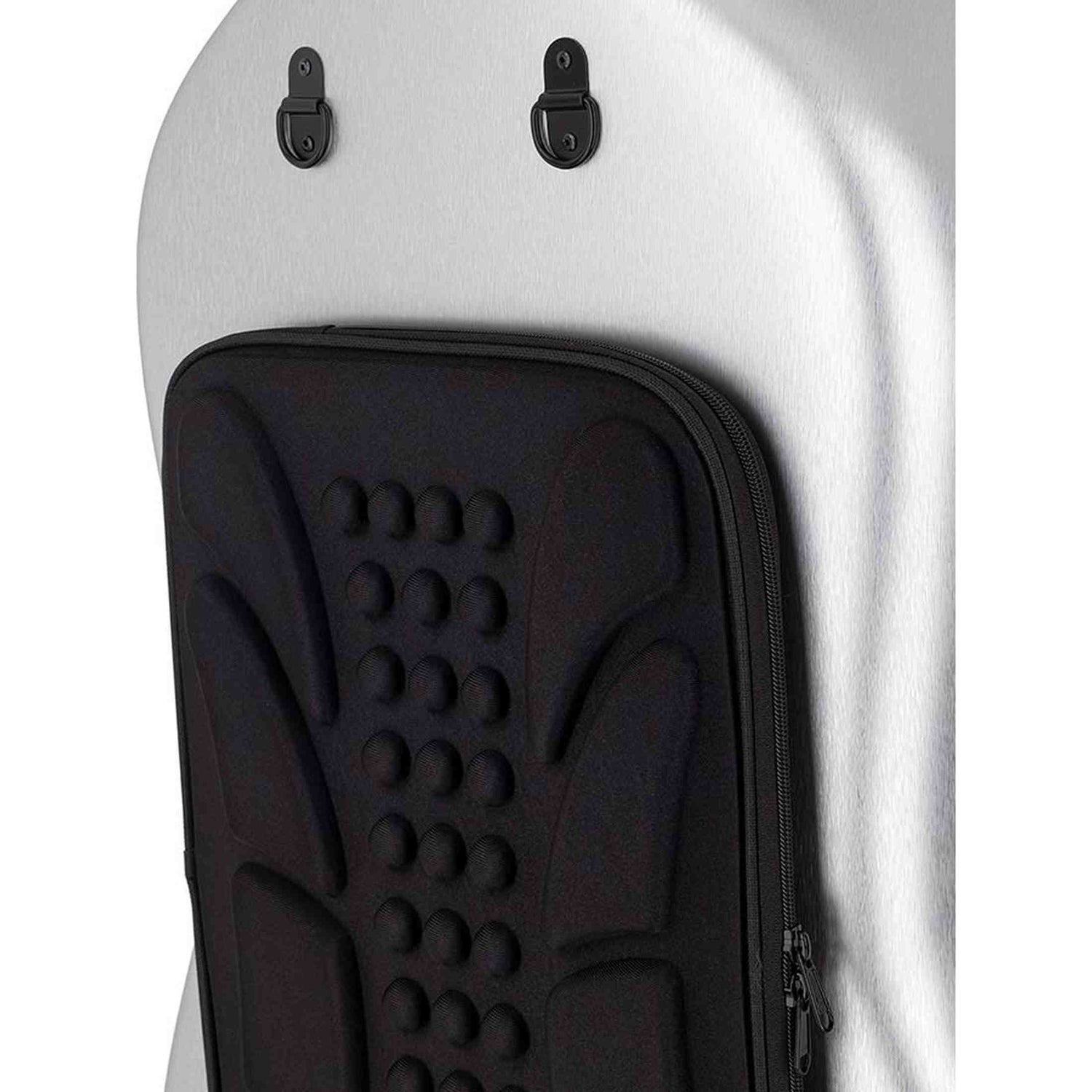 Der Koffer lässt sich mit einhändigen Verschlüssen öffnen und schließen. Die breiten Schultergurte mit Sicherheitskabeln bieten hohen Tragekomfort und zusätzliche Sicherheit. Der zusätzliche Griff oben ist praktisch für die Nutzung öffentlicher Verkehrsmittel. Mit nur 4,5 kg ist dieser Koffer für seine Klasse besonders leicht. Das gebürstete, silberfarbene PVC-Außenmaterial verleiht ihm ein elegantes Aussehen.