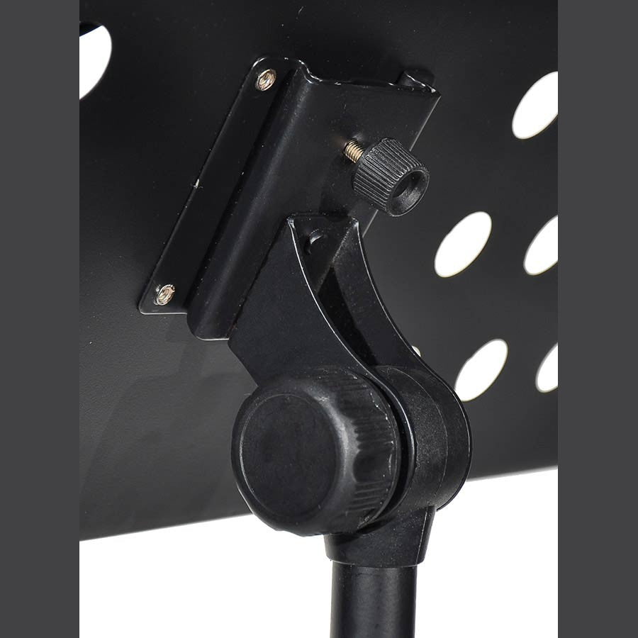 Das OMS-285 verfügt über ein robustes Stativ mit Kunststofffüßen , das optimalen Halt und Bodenschutz bietet. Zwei Büroklammern sorgen zusätzlich dafür, dass die Notenblätter auch bei leichtem Wind oder Bewegungen sicher an ihrem Platz bleiben.