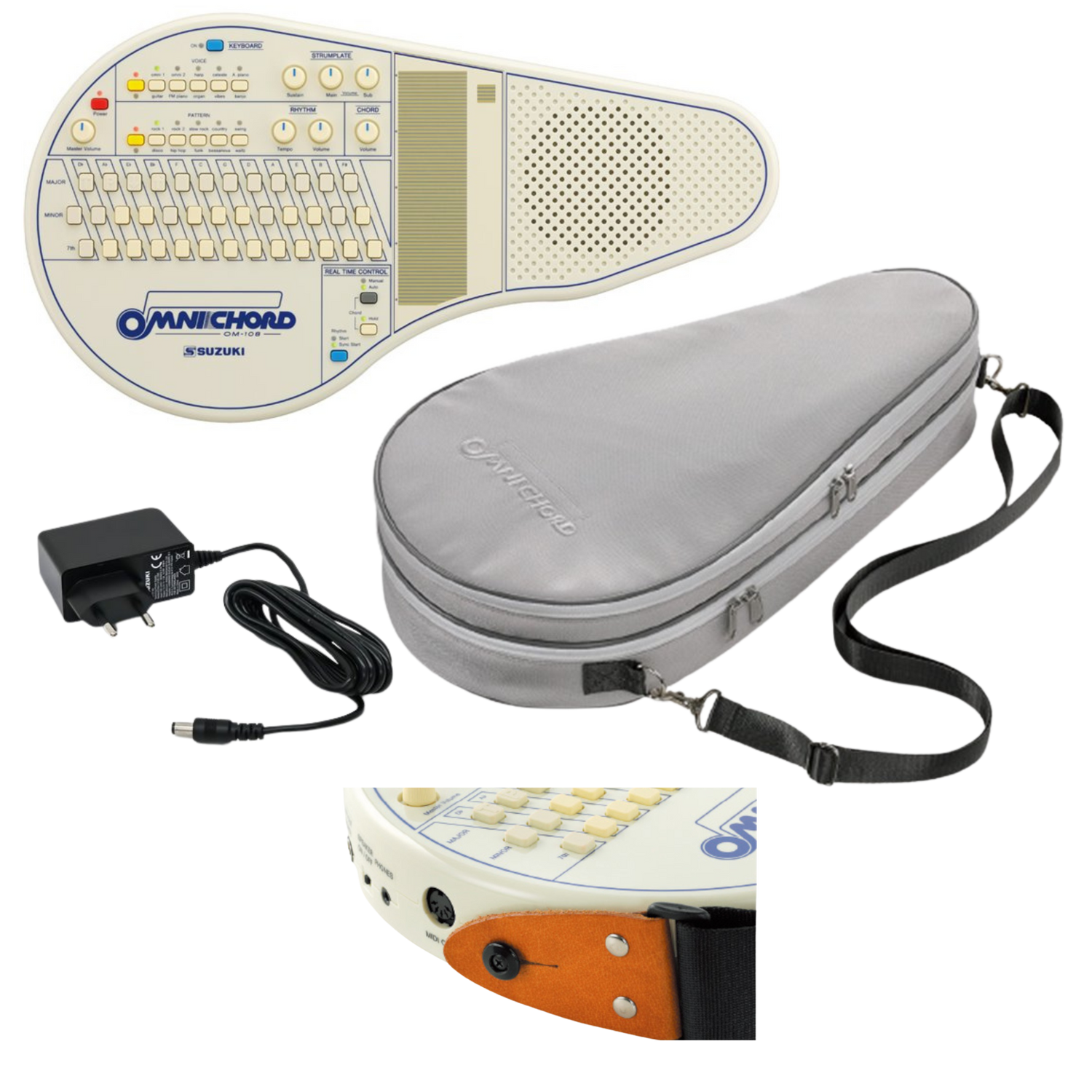 Suzuki Omnichord OM-108 Synthesizer-Set – mit Gigbag, Adapter und Gurtadaptern