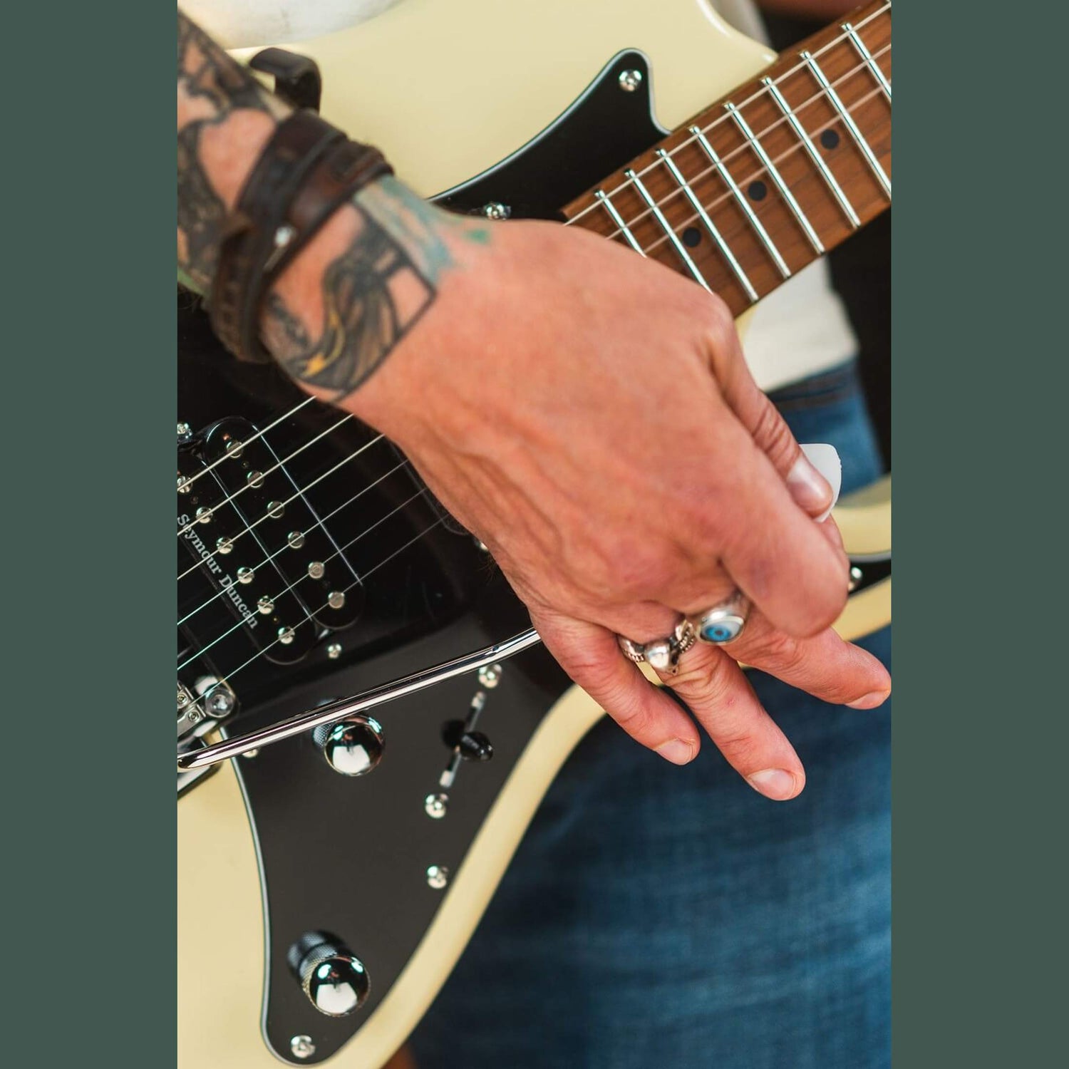 Die Kombination aus einem Seymour Duncan TB4 Humbucker und zwei Cort Voiced Tone VTS63 Single Coils bietet einen breiten Klangbereich. Der Humbucker am Steg liefert kräftige Rock-Sounds mit viel Output. Die Single Coils sorgen für klare Clean-Sounds und spritzige Zwischenpositionen. Mit dem Push-Pull-Tonregler schalten Sie den Humbucker auf Single Coil um, um zusätzliche Variationen zu erzielen. Das Cort CFA III S Tremolo, der Graph Tech Sattel und die Locking-Mechaniken sorgen für eine stabile Stimmung und zuverlässige Leistung.