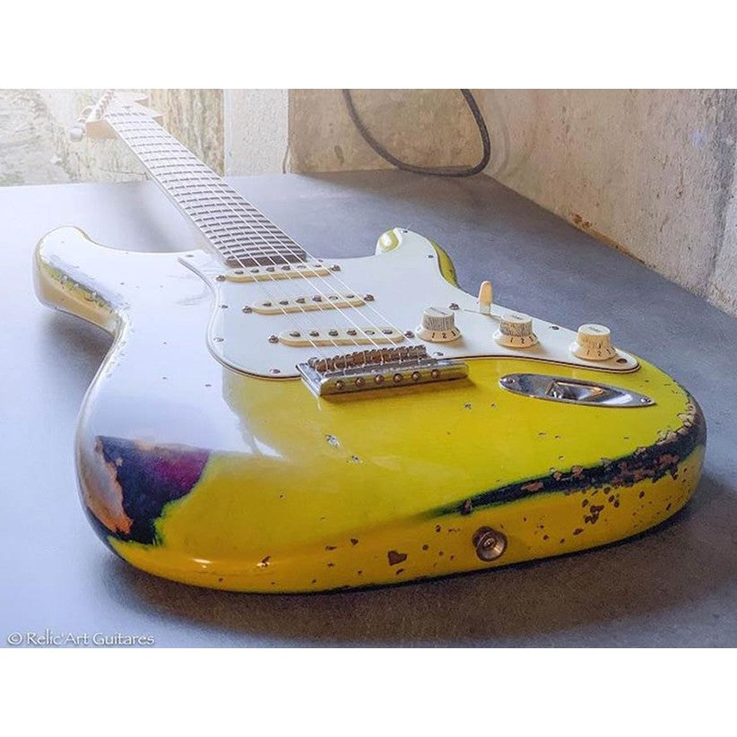 NitorLACK N167007108 ist ein zweischichtiger Polyurethanlack in Graffiti Yellow , einem auffälligen und kräftigen Farbton, der jede Gitarre sofort ins Auge fallen lässt. Obwohl diese Farbe in der klassischen Fender-Serie eher selten verwendet wird, erzeugt sie einen einzigartigen und modernen Look , insbesondere in Kombination mit einem Ahorngriffbrett und einem weißen Schlagbrett . Ideal für alle, die eine Alternative zu den traditionellen Vintage-Farben suchen.