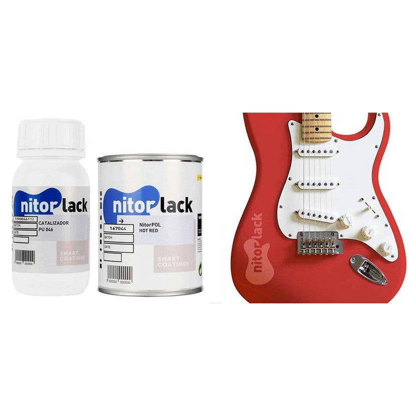NitorLACK N167044108 ist ein zweischichtiger Polyurethanlack in Hot Red , einem modernen, leuchtenden Rotton, der auch vom Fender Custom Shop verwendet wird. Diese Farbe ähnelt Torino Red, weist jedoch eine 10–15 % höhere Farbsättigung auf, was dem Finish mehr Intensität, Charakter und Tiefe verleiht. Hot Red verleiht Gitarren eine starke optische Wirkung und harmoniert sowohl mit hellen als auch mit dunklen Griffbrettmaterialien.