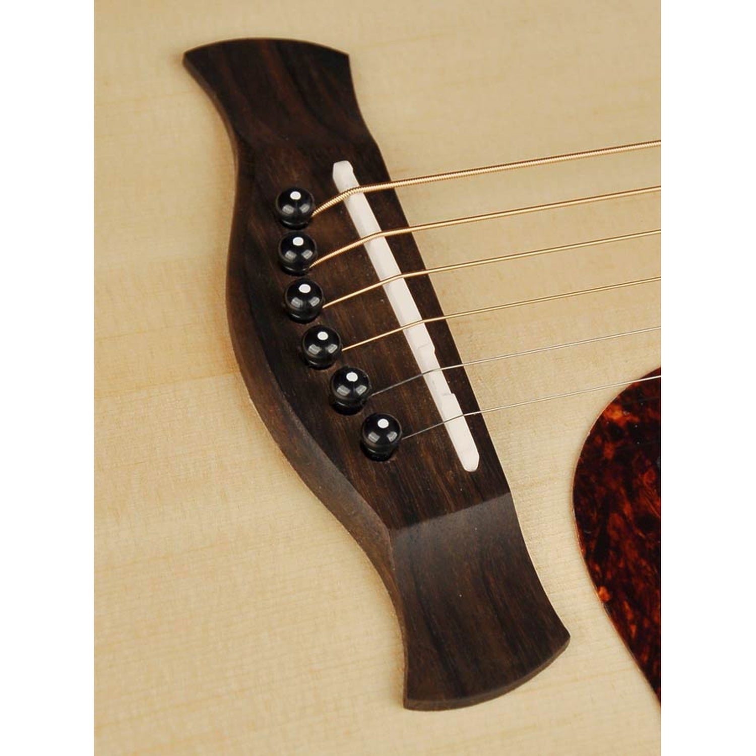 Die D-40 ist ideal für Gitarristen, die gerne Strumming und Flatpicking spielen. Dank der X-förmigen Beleistung und des tiefen Korpus bietet diese Gitarre Volumen, Sustain und Klarheit. Ausgestattet mit einem Sattel und Steg aus echtem Knochen, stabilen Derjung Deluxe-Mechaniken und einem seidenmatten Halsfinish, lässt sie sich vom ersten Moment an komfortabel spielen. Griffbrett und Steg aus Palisander sorgen für zusätzliche Klangbalance und Präzision. Eine zuverlässige Wahl für Spieler, die einen kraftvollen Akustiksound suchen.
