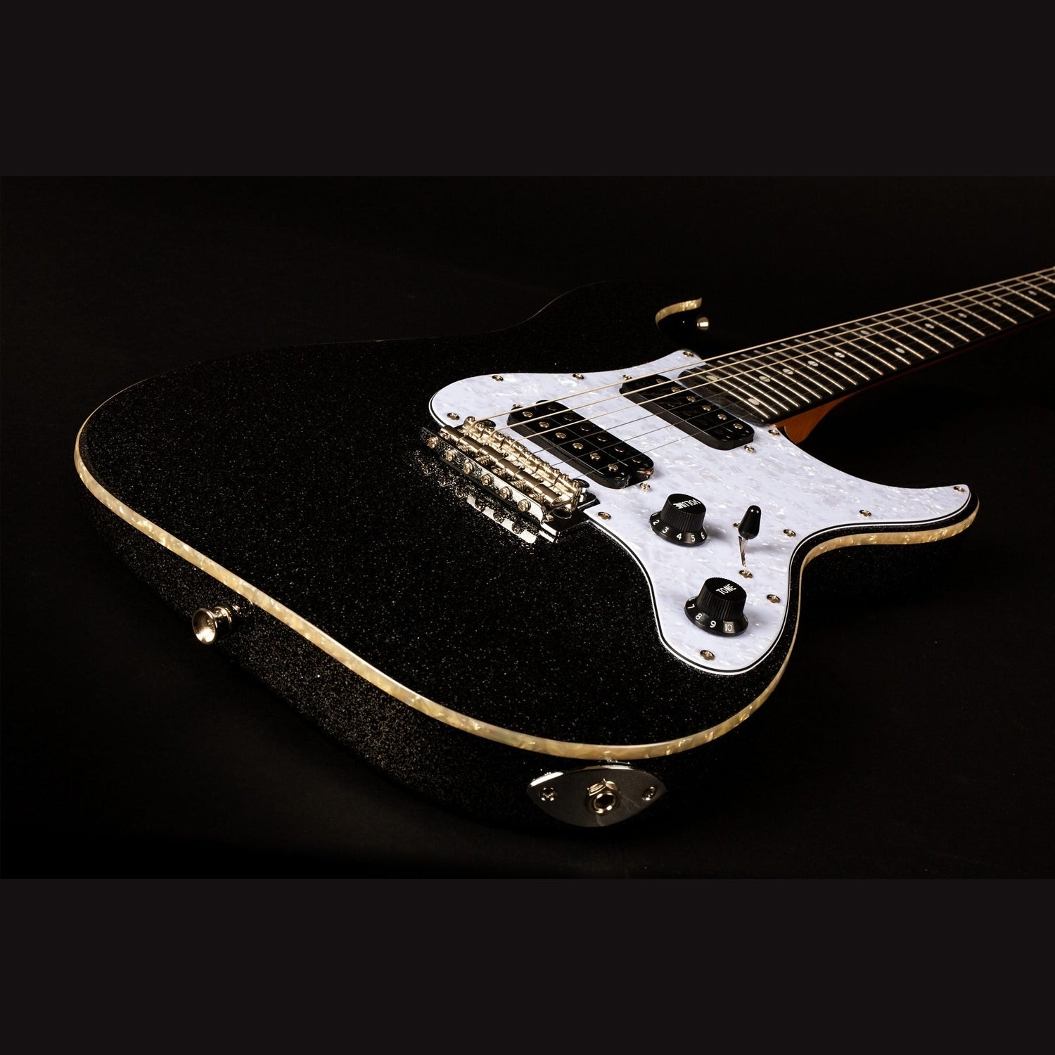 Die Jet JS-500 BLS ist eine leistungsstarke Gitarre, die durch ihr Black Sparkle -Finish auffällt, perfekt für Musiker, die eine Kombination aus Stil und Funktionalität suchen. Die Gitarre verfügt über einen massiven Hals aus kanadischem Ahorn mit moderner C-Form , der bequem zu halten ist und ein intuitives Spielerlebnis bietet.