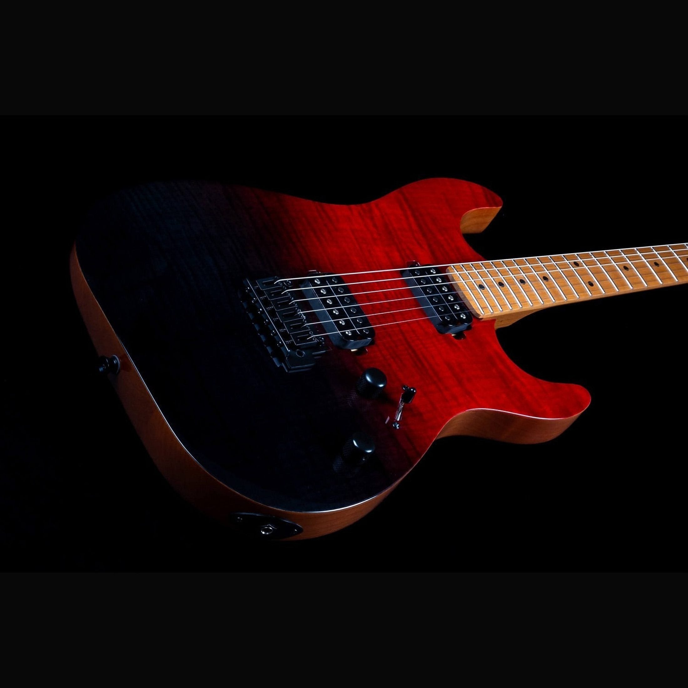 JET JS-1000 Vulcano S-Style E-Gitarre HH, geflammte Ahorndecke, gerösteter Ahornkorpus, transparentes Rot
