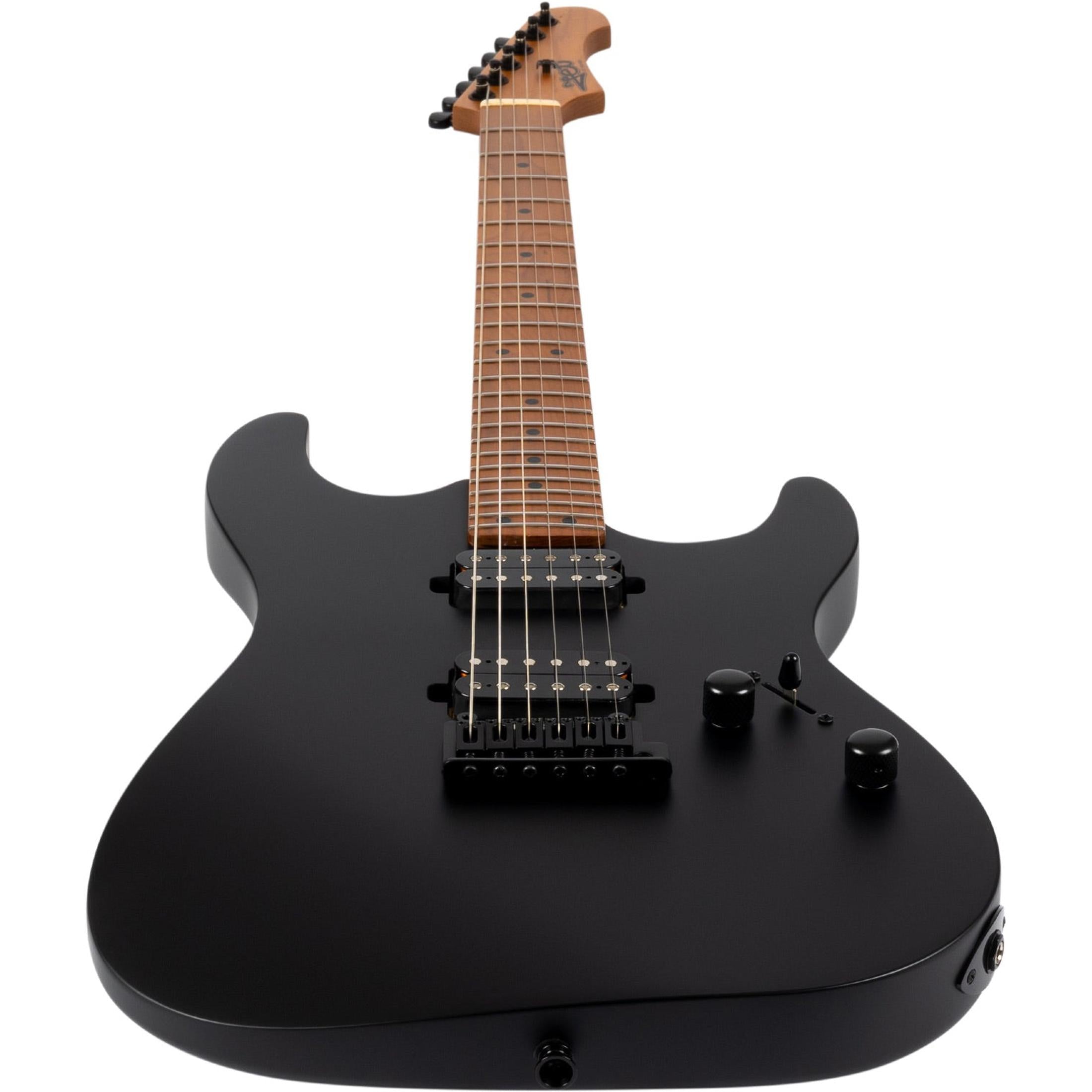 Die JET JS-500 MBK ist eine moderne S-Style E-Gitarre mit einem schlanken und minimalistischen Look. Das fehlende Pickguard lässt die direkt montierten Tonabnehmer und den Korpus aus gerösteter Pappel besonders hervorstechen. Der Hals aus kanadischem Ahorn mit Modern-C-Profil liegt gut in der Hand und ermöglicht ein flüssiges Spiel über alle 24 Bünde.