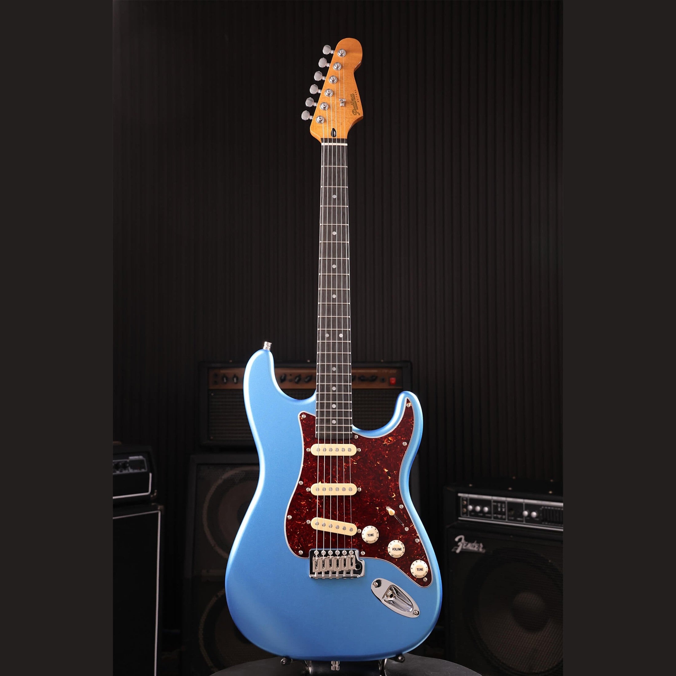 Patina PS-3 LPB S-Style E-Gitarre SSS Alnico V Nitro Paulownia Korpus Gerösteter Ahornhals Lake Placid Blue