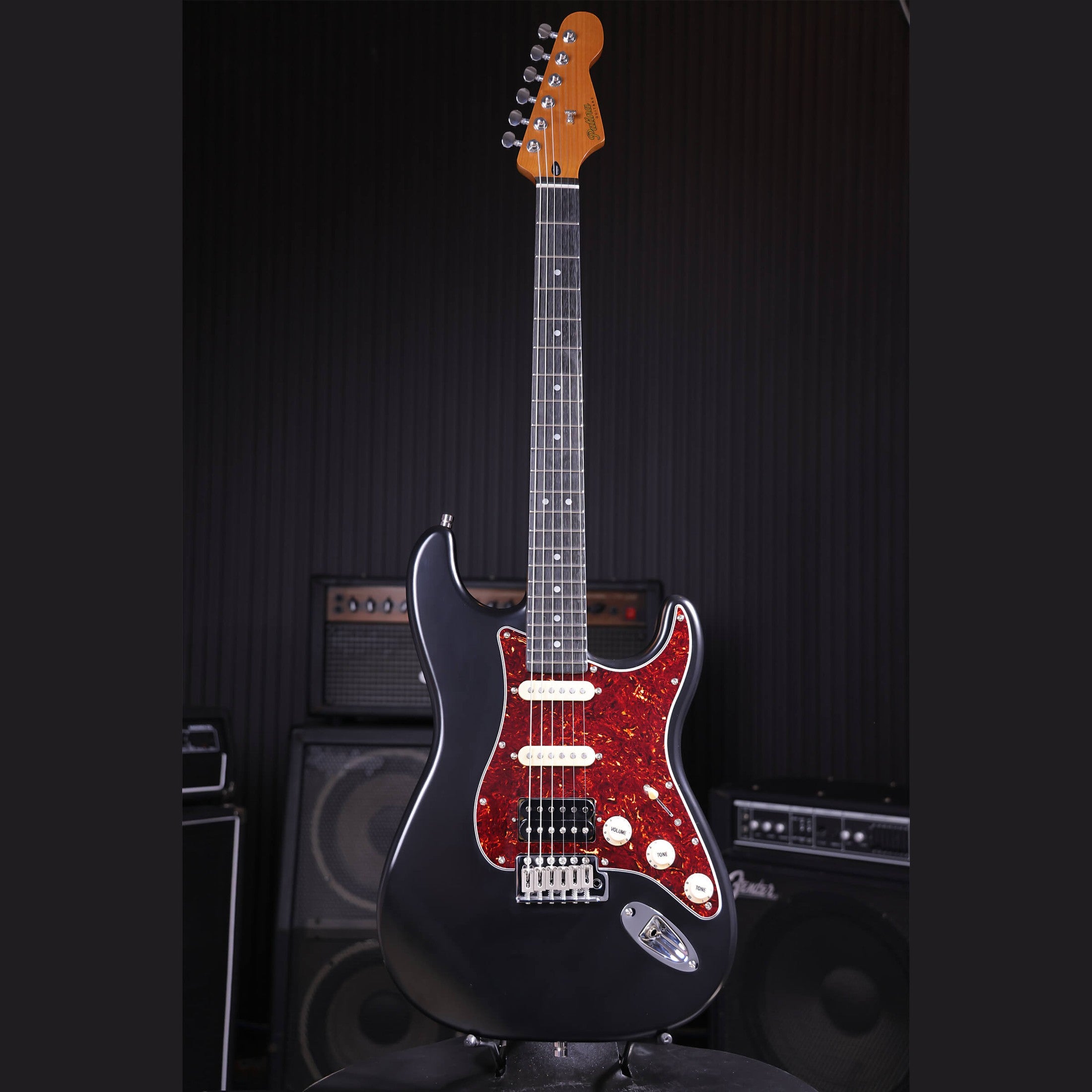 Patina PS-4 BK S-Style E-Gitarre HSS Alnico V Nitro Paulownia Korpus Gerösteter Ahornhals Schwarz