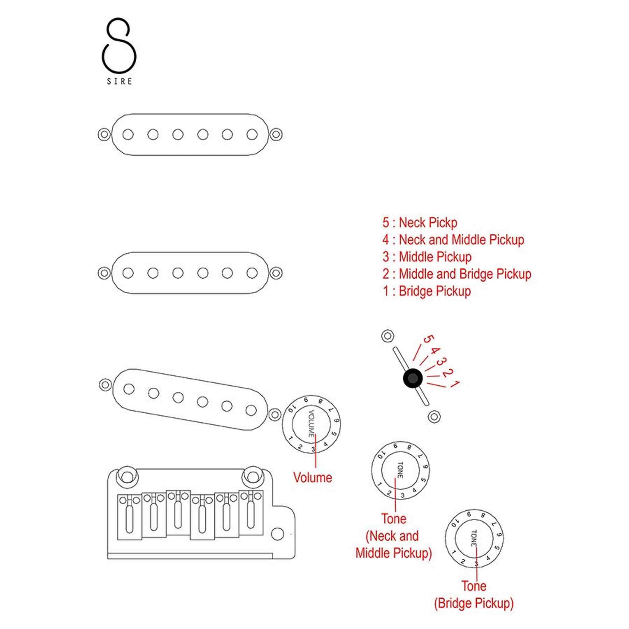 - Tonabnehmer: Sire Standard-ST Tonabnehmerset (SSS)