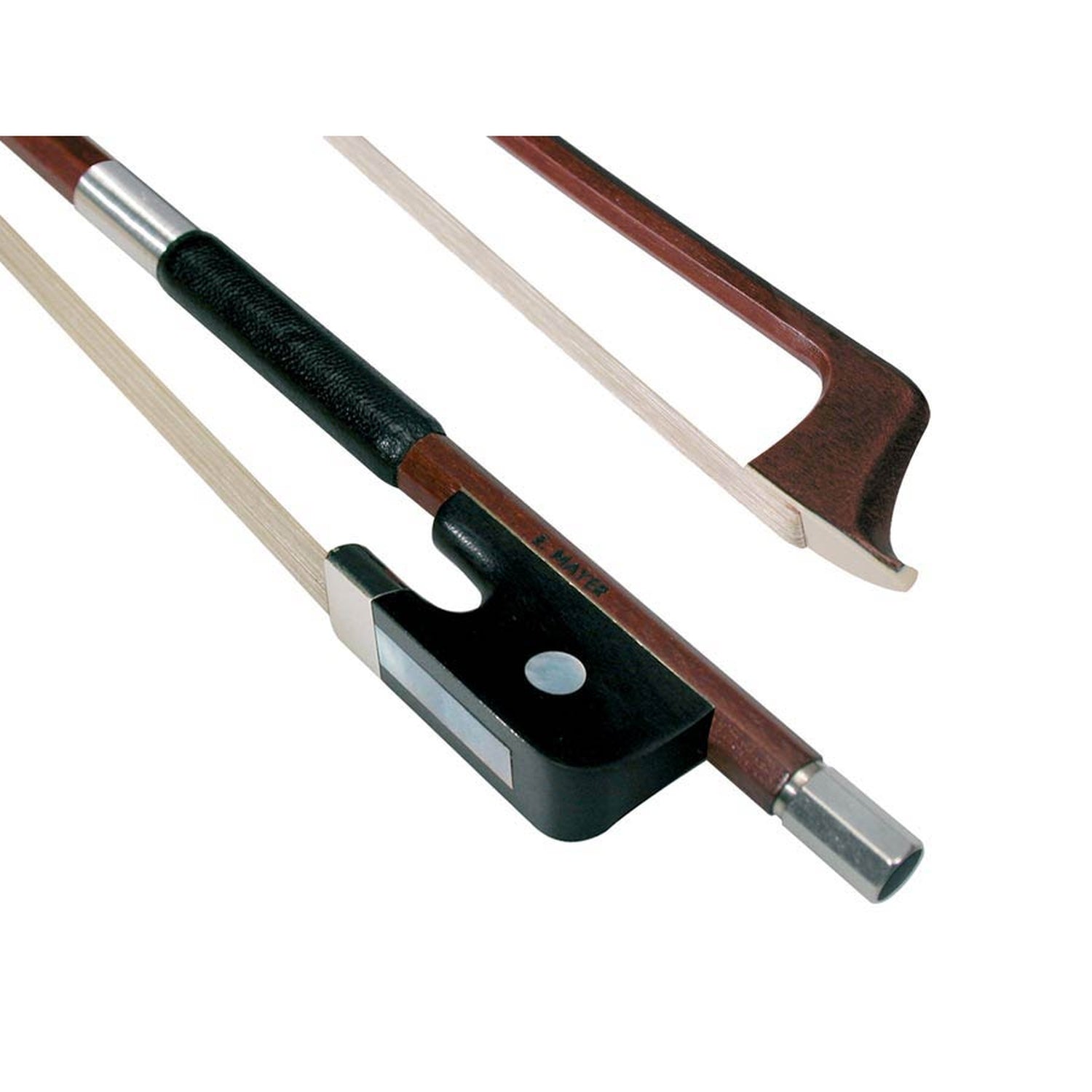 Der Bogen verfügt über einen Frosch aus Ebenholz mit Metallrückplatte und einem einzelnen Öhr, einen dreifarbigen Knopf und eine Wicklung aus Weißmetall. Als Teil der Brasilholz-Basiskollektion von Dörfler vereint der DC6A robuste Materialien mit klassischer Optik. Dieser Bogen bietet einen harmonischen Klang und ist äußerst zuverlässig – die ideale Wahl für alle, die das Cellospielen erlernen möchten.