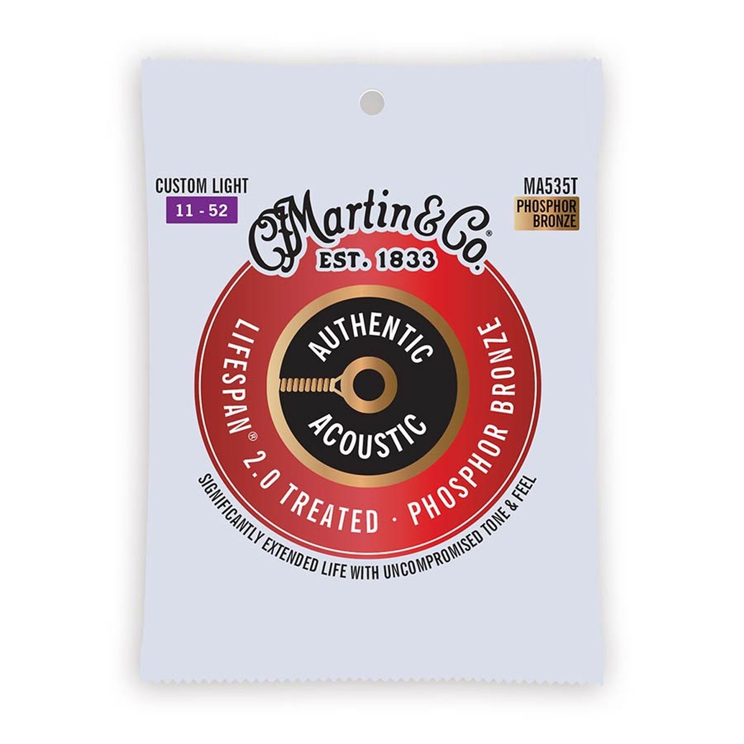 Martin & Co MA535T Saitensatz Phosphorbronze, Custom Light 011-015-023-032-042-052 Martins Lifespan 2.0-Saiten der nächsten Generation werden mit einer neuen, patentierten Technologie entwickelt, die nur bei Martin erhältlich ist. Diese Technologie wurde entwickelt, um den Kerndraht und den Wickeldraht zu schützen und Korrosion zu verhindern, ohne den Klang zu beeinträchtigen. Authentische Acoustic Lifespan 2.0-Saiten sehen besser aus, klingen besser und fühlen sich besser an und sorgen für ein sanftes Spielerlebnis, das den Fingerwiderstand reduziert. Martin Authentic Acoustic Lifespan® 2.0-Saiten bieten eine Behandlung der nächsten Generation für lange Lebensdauer, hervorragende Spielbarkeit und Spielgefühl sowie überragende Zuverlässigkeit mit authentischem Klang.