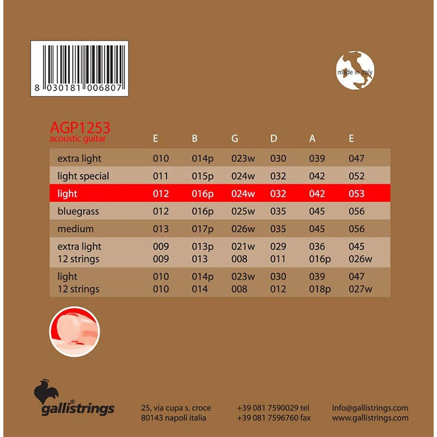 Galli AGP1253 Saitensatz Akustik, Phosphorbronze umsponnen, hell, 012-053