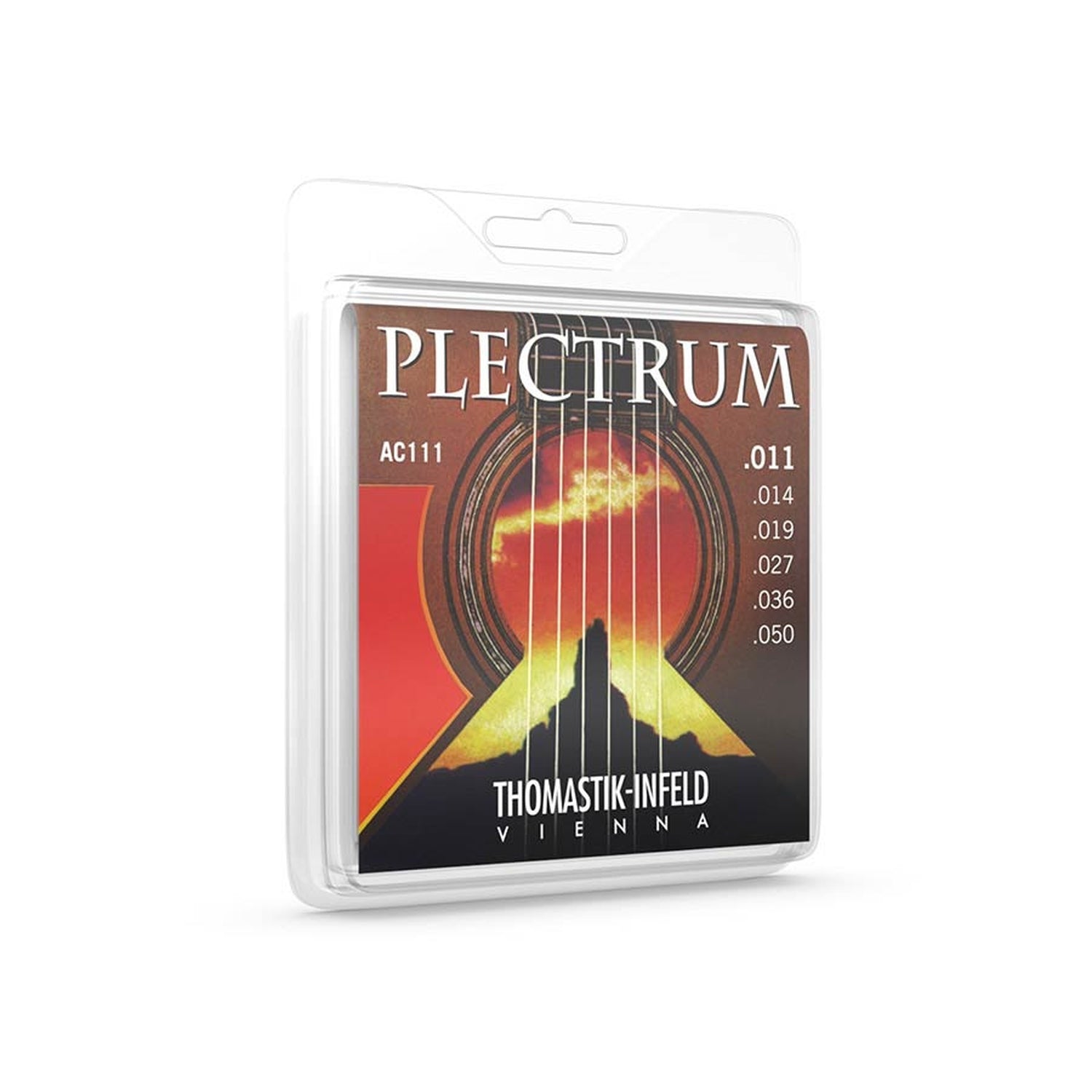 Thomastik Infeld THAC-111 Saitensatz Akustik, Bronze Hybrid umsponnen, 011-014-019-027-036-050 Eine bemerkenswerte Saite, die Kommentare hervorruft wie: „Ich wusste nie, dass es eine solche Saite gibt!“. Die Kombination aus geringerer Gesamtspannung, hybrider Anordnung von Flatwounds (A,D,G) mit Roundwound-Tief-E und Seideneinlagen (für präzise Obertonbalance) erzeugt einen schönen, fast klassischen Klang mit der Wärme von Bronze und der einfachen Spielbarkeit von ein feiner Satz Jazzsaiten. Und aufgrund seiner geringen, gleichmäßig ausgewogenen Spannungen können PLECTRUMS die Spielzeit vieler schöner älterer Gitarren mit schwacher Bestrebung oder anderen besonderen Altersbedingungen verlängern.