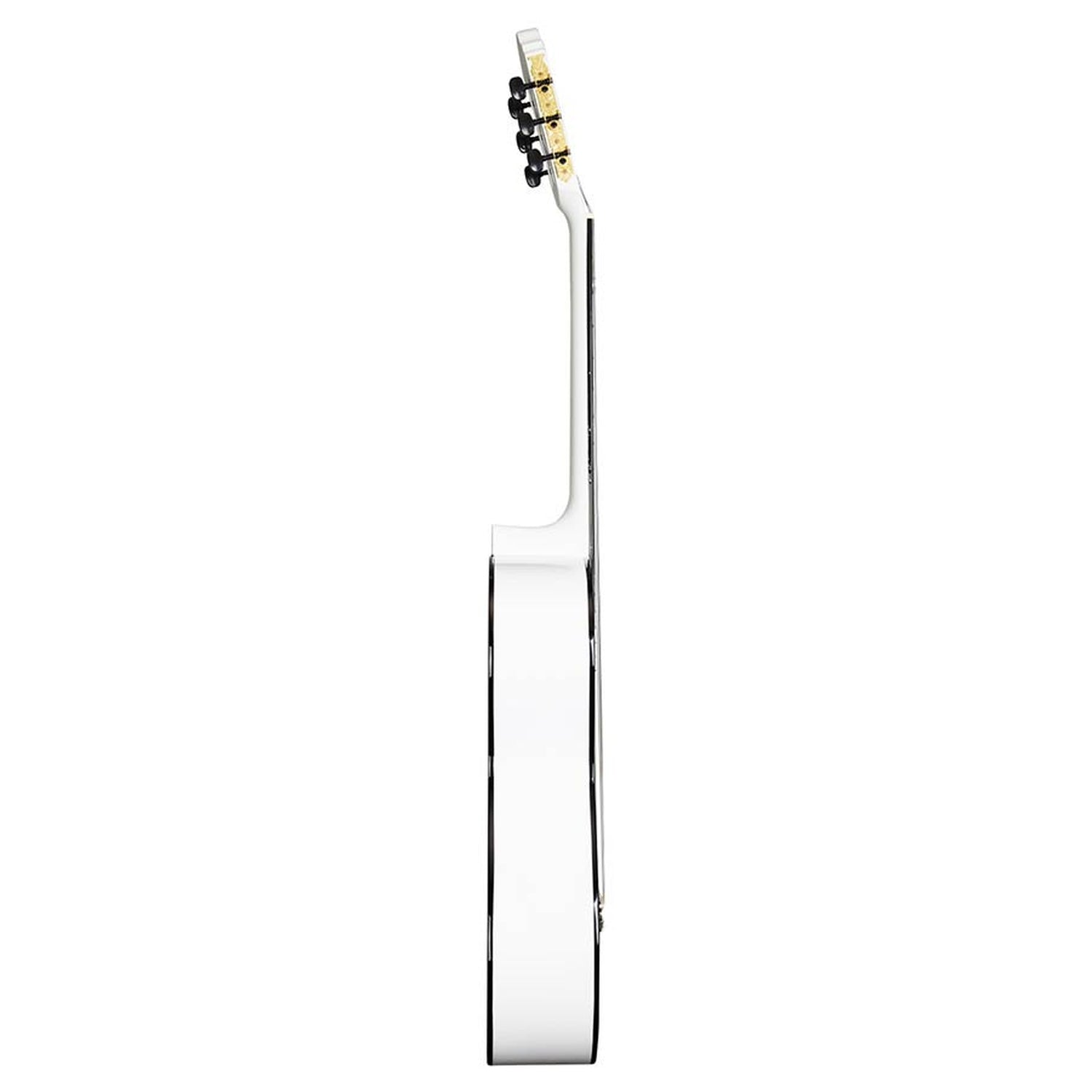 The Valencia VC103WT is a stylish 3/4-sized classical guitar, perfect for young musicians and beginners. Its elegant high-gloss white finish offers a modern and refined look, while its compact size makes it ideal for children and players with smaller hands.