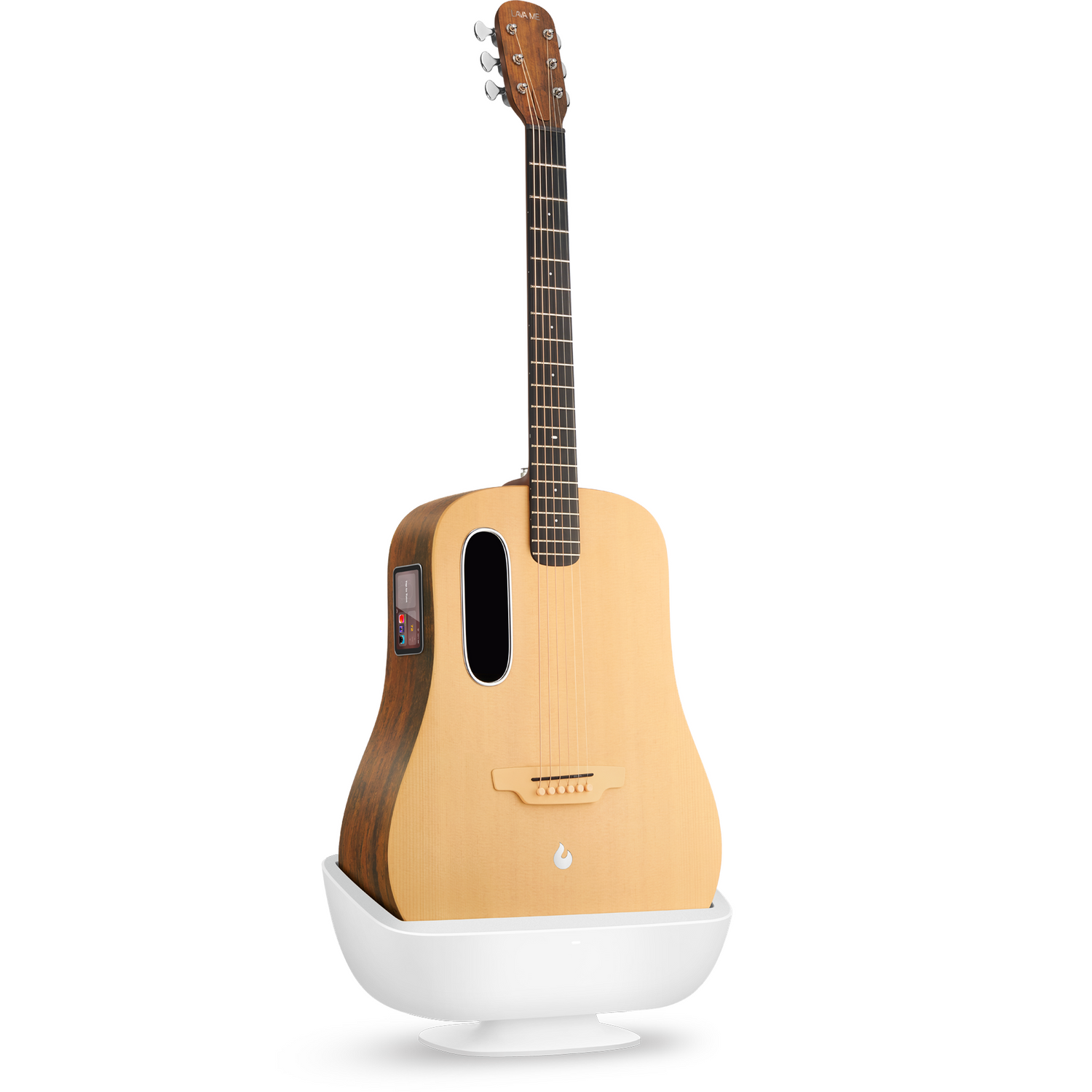 The built-in technology makes the LAVA ME 4 Spruce a truly smart guitar. The Hilava 2.0 touchscreen system gives you access to over 30 effects, a looper, backing tracks, and an interactive practice app. Thanks to the FreeBoost™ system, you can even play completely unplugged with effects like reverb, delay, and drive. With the LiveDrums feature, you can play as if you're backed by a full band, and the loop function makes it easy to capture new ideas. Whether you're practicing, jamming, or performing, this guitar gives you limitless creative freedom. Comes with a Lite bag for safe and stylish transport.