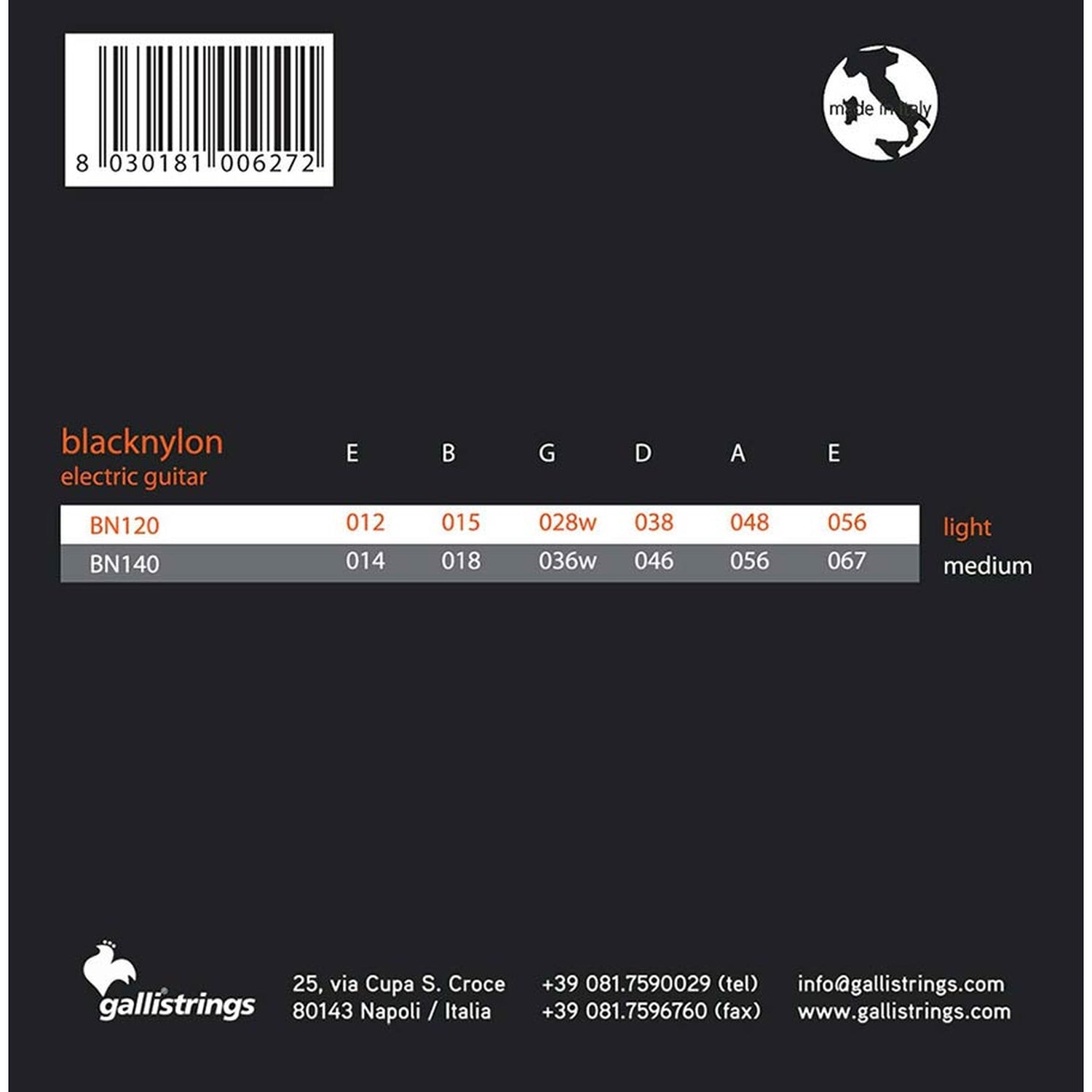 Galli BN-120 Black Nylon Paolo Anessi Signature Electric Guitar Strings (012-056)