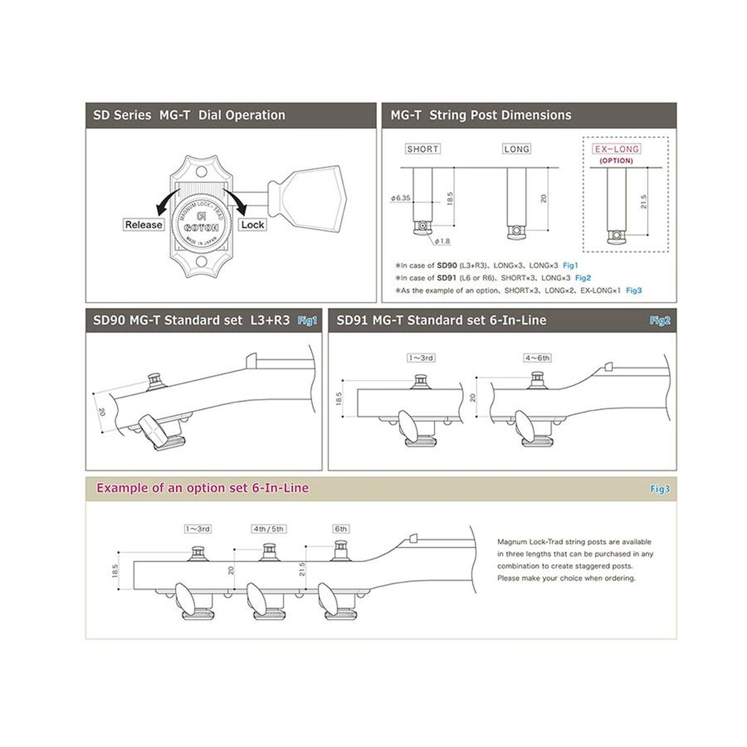 A key feature of the Gotoh SD-91-MGTGG is its innovative Magnum Lock technology. This feature ensures your strings always stay perfectly in place, ensuring stable and long-lasting tuning. The beautiful gold button not only adds a touch of elegance but is also designed for ease of use and comfort during tuning.