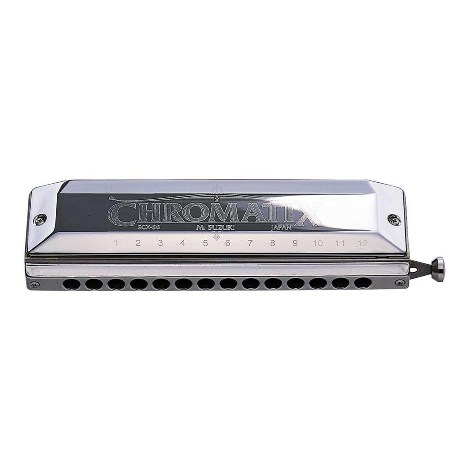 If harmonicas can be described as luxurious, the Suzuki Chromatix series certainly qualifies. These 12-, 14-, and 16-hole harmonicas are beautiful to look at, substantial to hold, and a joy to play. Comfortable and airtight, the Chromatix series is designed specifically for professionals and hand-built by skilled workers . . . one at a time. Features include an ergonomically designed mouthpiece, a precise and smooth slide mechanism, an ABS comb, phosphor bronze reeds, extra-thick brass reed plates, and chrome-plated lids. Exquisite attention to detail makes this the most airtight chromatic ever produced by a major manufacturer. You only need to play a Chromatix once to hear and feel the difference. Their smooth tone production and quick response allow you to advance your playing level beyond what you thought possible. Each Chromatix harmonica is housed in its own luxurious, soft-lined case.
