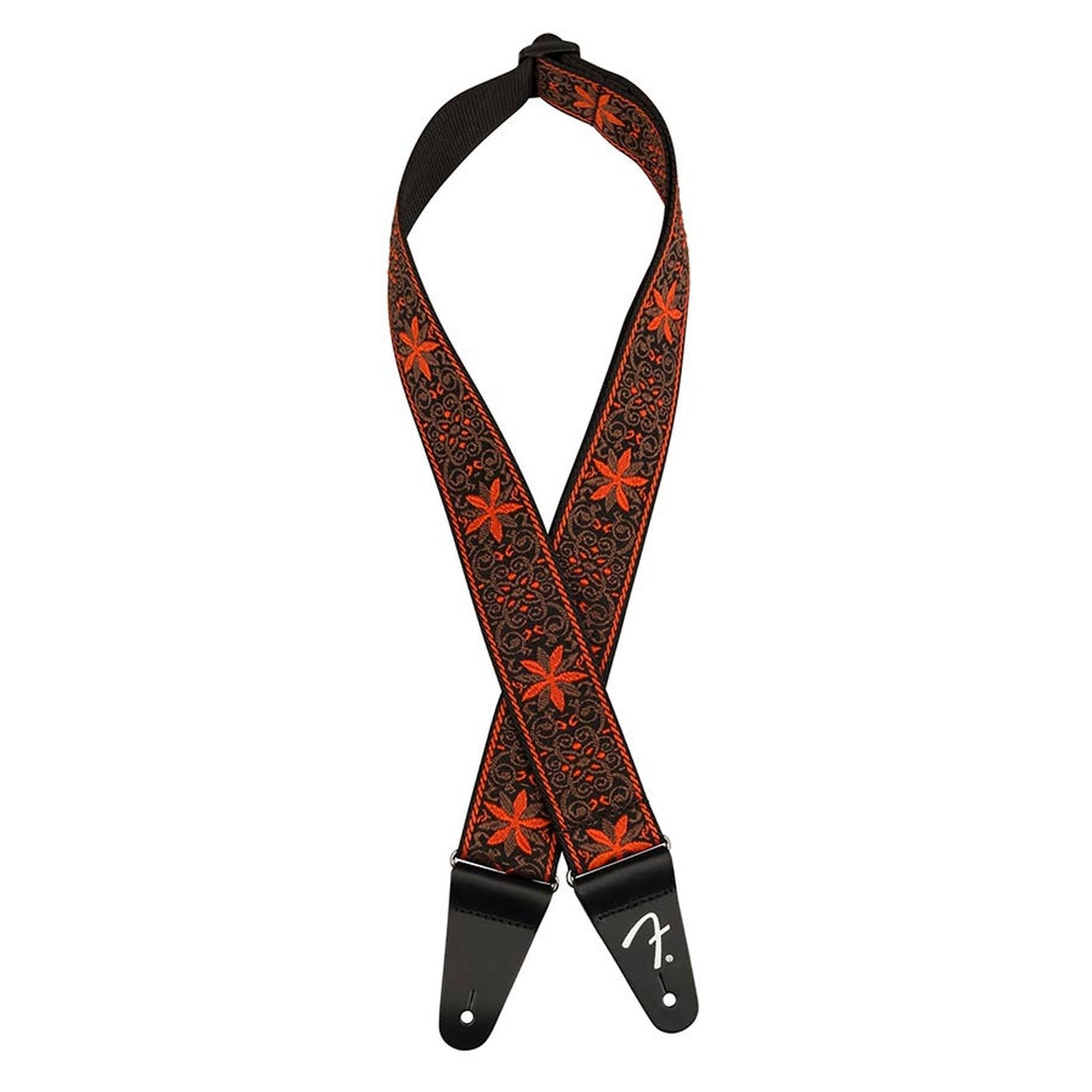 Fender 990638028 2" guitar strap, Pasadena woven, orange wall flower A modern take on classic designs, the Pasadena Woven Strap features durable woven webbing with intricate patterns. This fully adjustable strap is backed by tubular nylon and built for long-lasting performance.