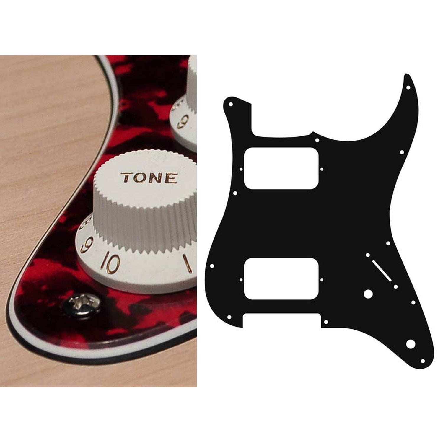 Boston ST-332-RR pickguard, Stallion, HH, 2 pot holes, 3-5 switch, 3 ply, tiger red