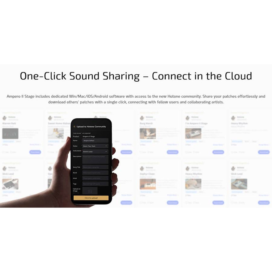 The USB-C port makes the Ampero II Stage a versatile interface. Share patches effortlessly via dedicated software. With the ability to design dual effects chains, enhanced IR performance, over 460 effects, a robust housing, and much more, the Ampero II Stage is the solution for a wide range of musical settings.