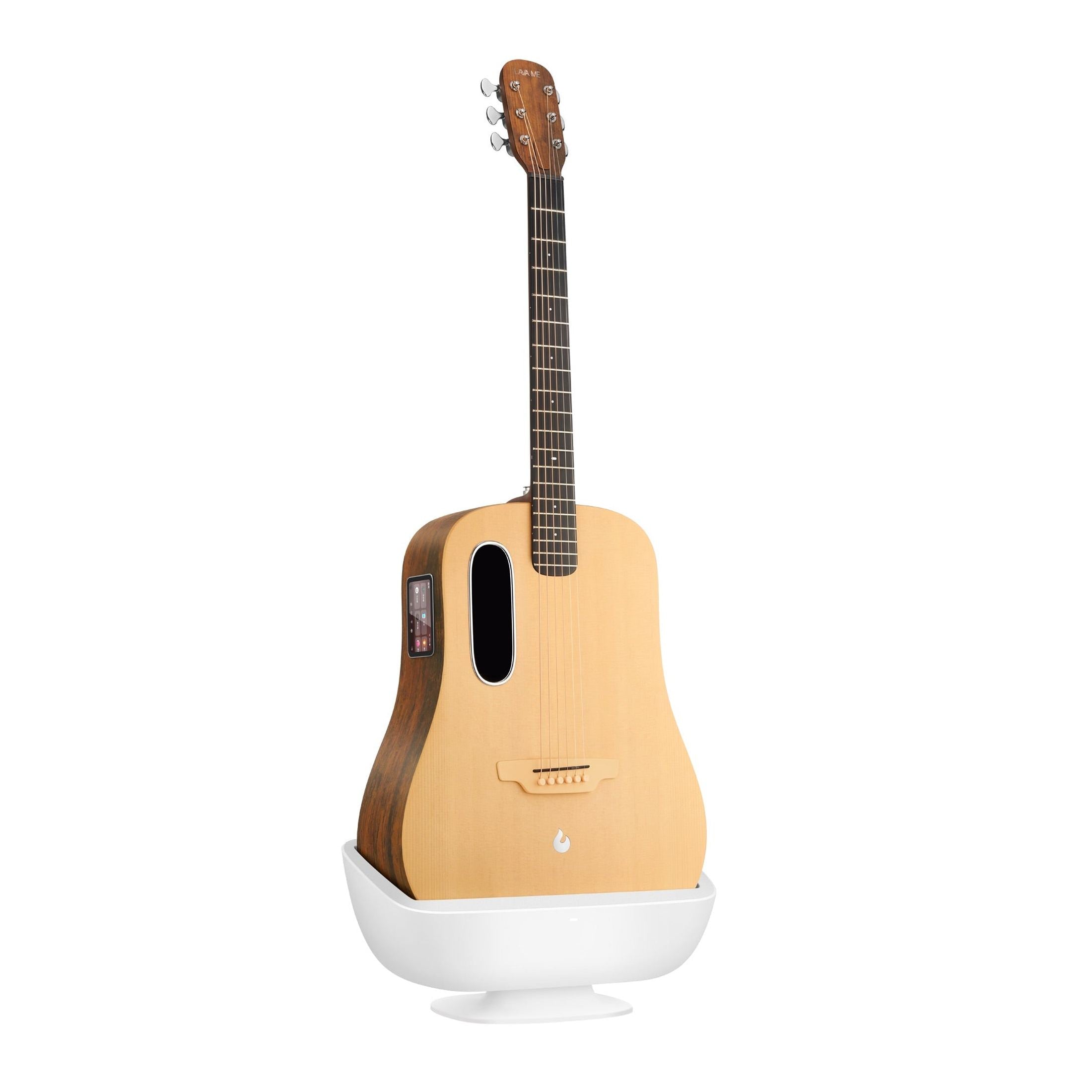 With the LAVA Space Charging Dock, you can easily charge your LAVA ME Spruce 36-inch guitar while it stands securely upright. Simply place your guitar in the dock and charging starts instantly, without cables. This provides a fixed spot for your guitar, ensuring it's always ready for use.