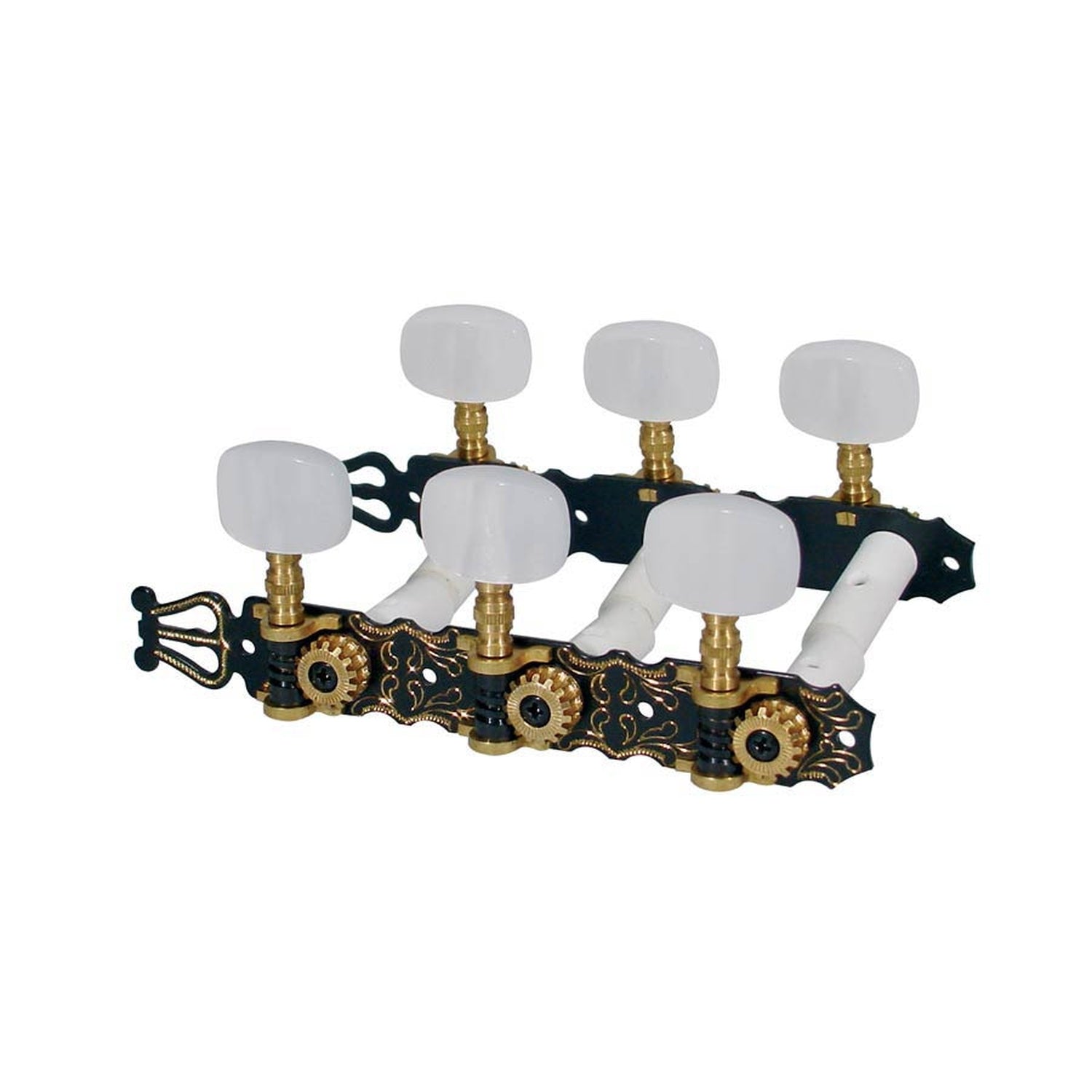 Boston 132-PBE stemmechanieken voor klassieke gitaar - nylon as, 3x links + 3x rechts, 70 mm, parelmoer, zwart gegraveerd