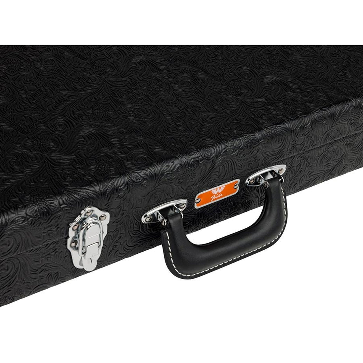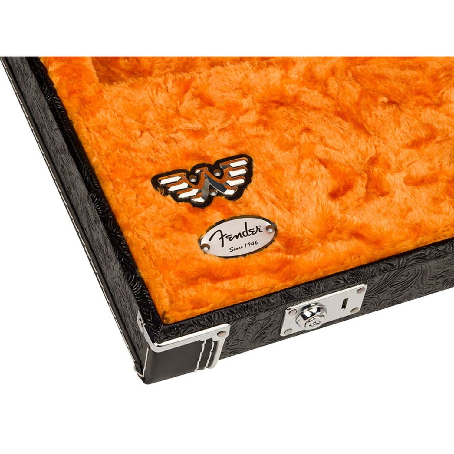 Waylon Jennings koffer voor Strat/Tele, western-gegraveerd vinyl, oranje pluche interieur