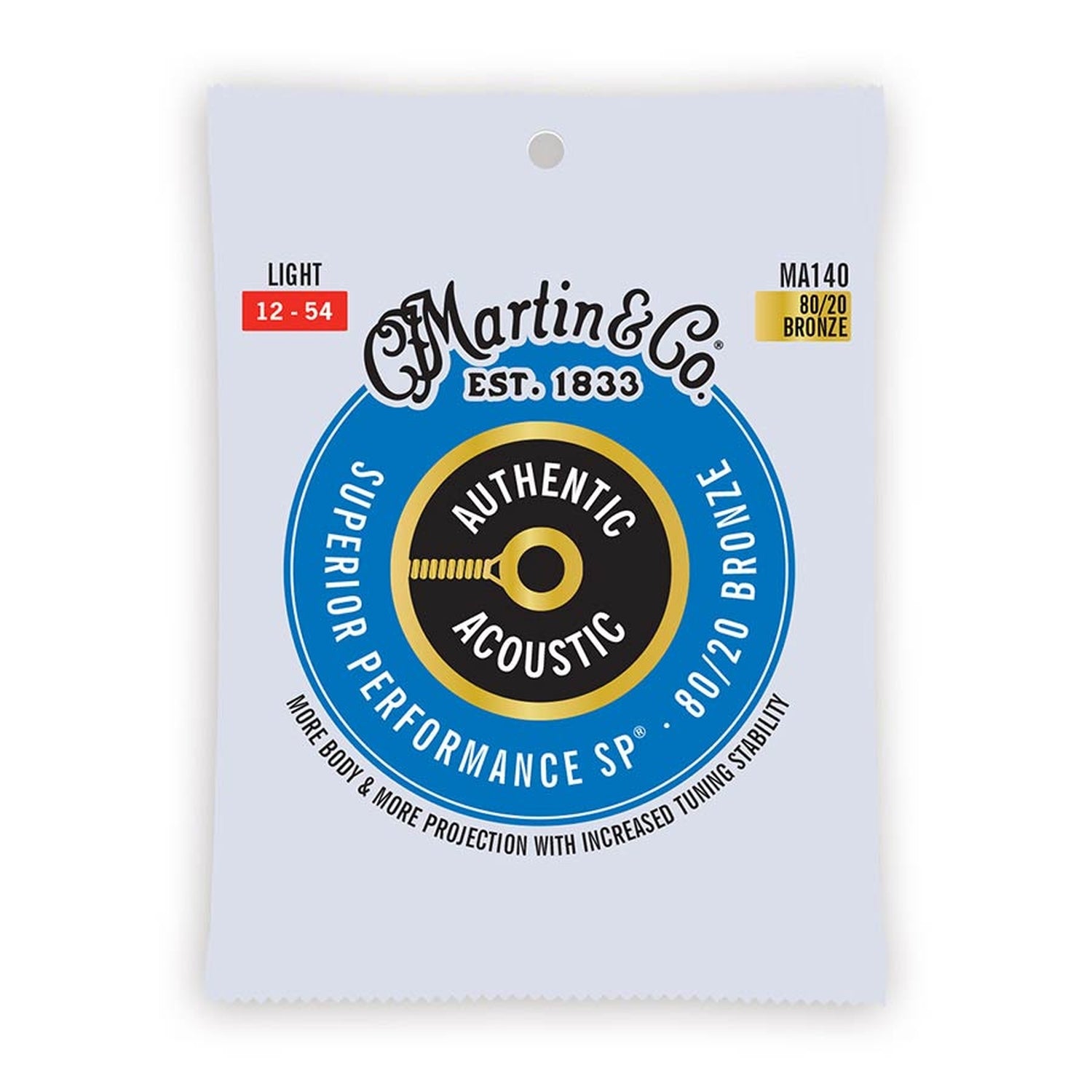 Martin & Co MA140 snaren set 80/20 bronze, light 012-016-025-032-042-054 These snaars are engineered with the performer in mind and they will always stand up to rigorous practice and performance schedules. We start with our highest tensile-strength core wire, then tin-plate it on all six snaars for added corrosion resistance; because what you don’t see matters! When coupled with our highest quality wrap wire you get consistent true tone that you can count on song after song. Available in 80/20 Bronze and 92/8 Phosphor Bronze.