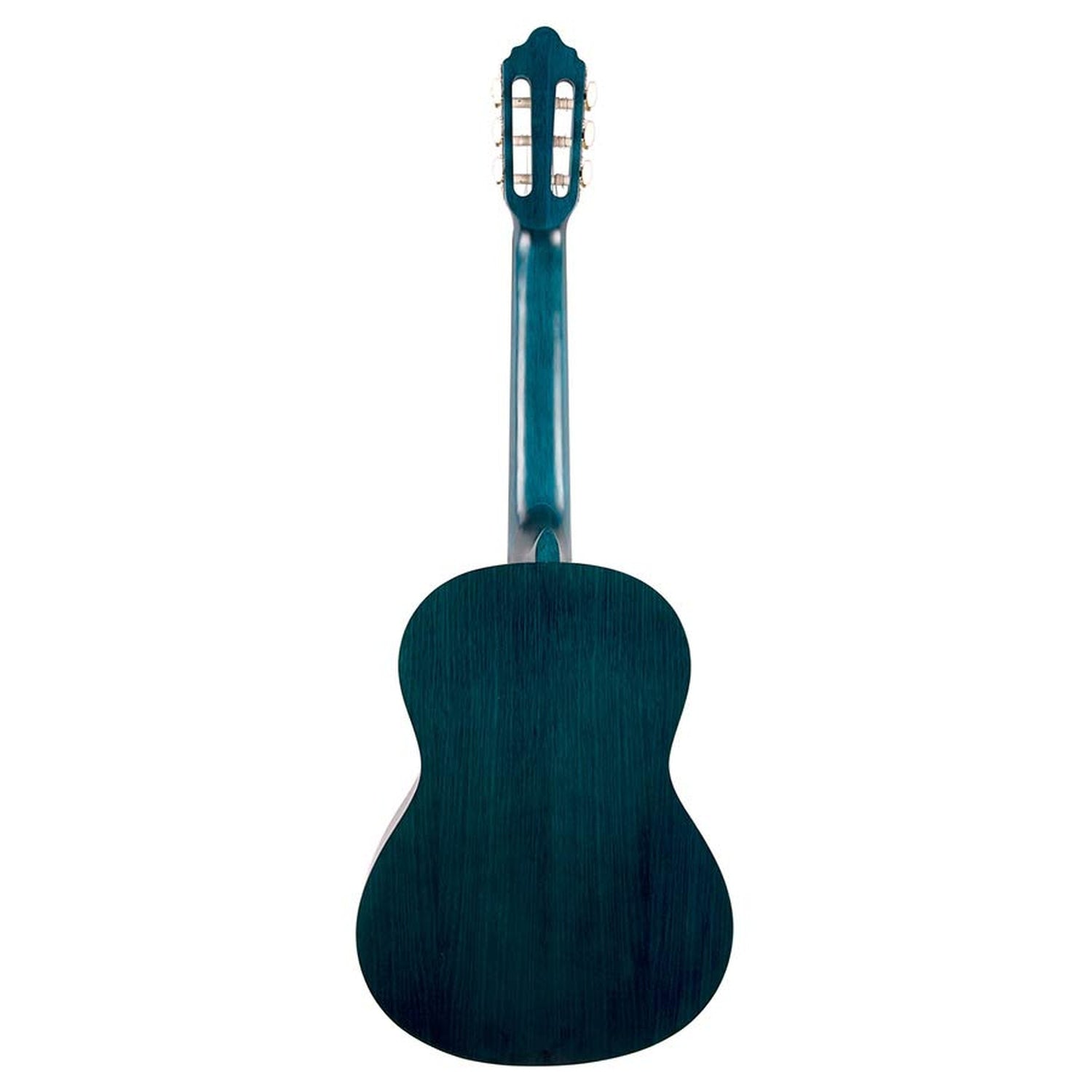 Valencia VC203TBU klassieke gitaar 3/4, sitka sparren top, nato zij- & achterblad, transparant blauwe finish