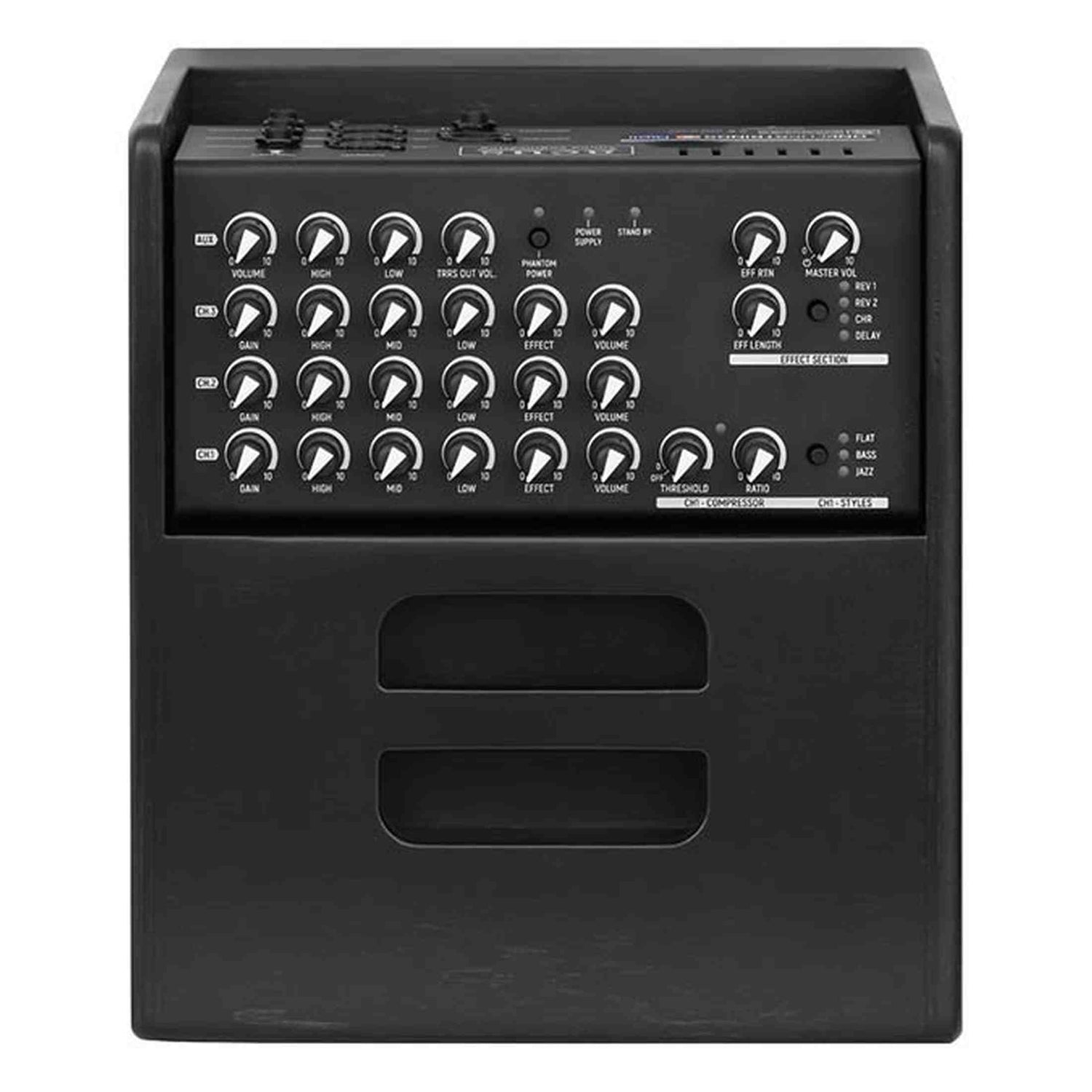 Das schwarze Holzgehäuse verleiht dem ONE-5F BK ein professionelles und elegantes Aussehen. Kombi-Eingänge und ein AUX-Eingang ermöglichen den einfachen Anschluss von Instrumenten, Mikrofonen und externen Signalquellen. Über den XLR-Line-Ausgang lässt sich das Signal mühelos an eine PA-Anlage oder ein Aufnahmegerät weiterleiten. Kompakt, leistungsstark und für den täglichen Einsatz auf der Bühne oder im Studio konzipiert.