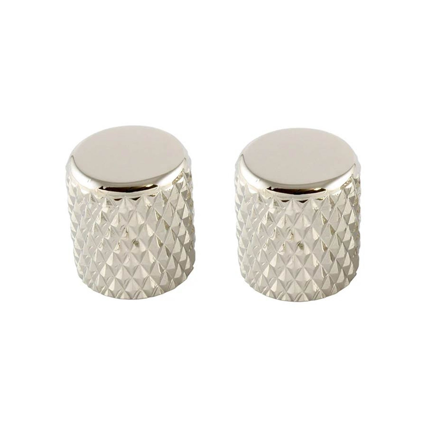 Allparts MK0112001 schwere gerändelte Zylinderknöpfe – Nickel, 2er-Set
