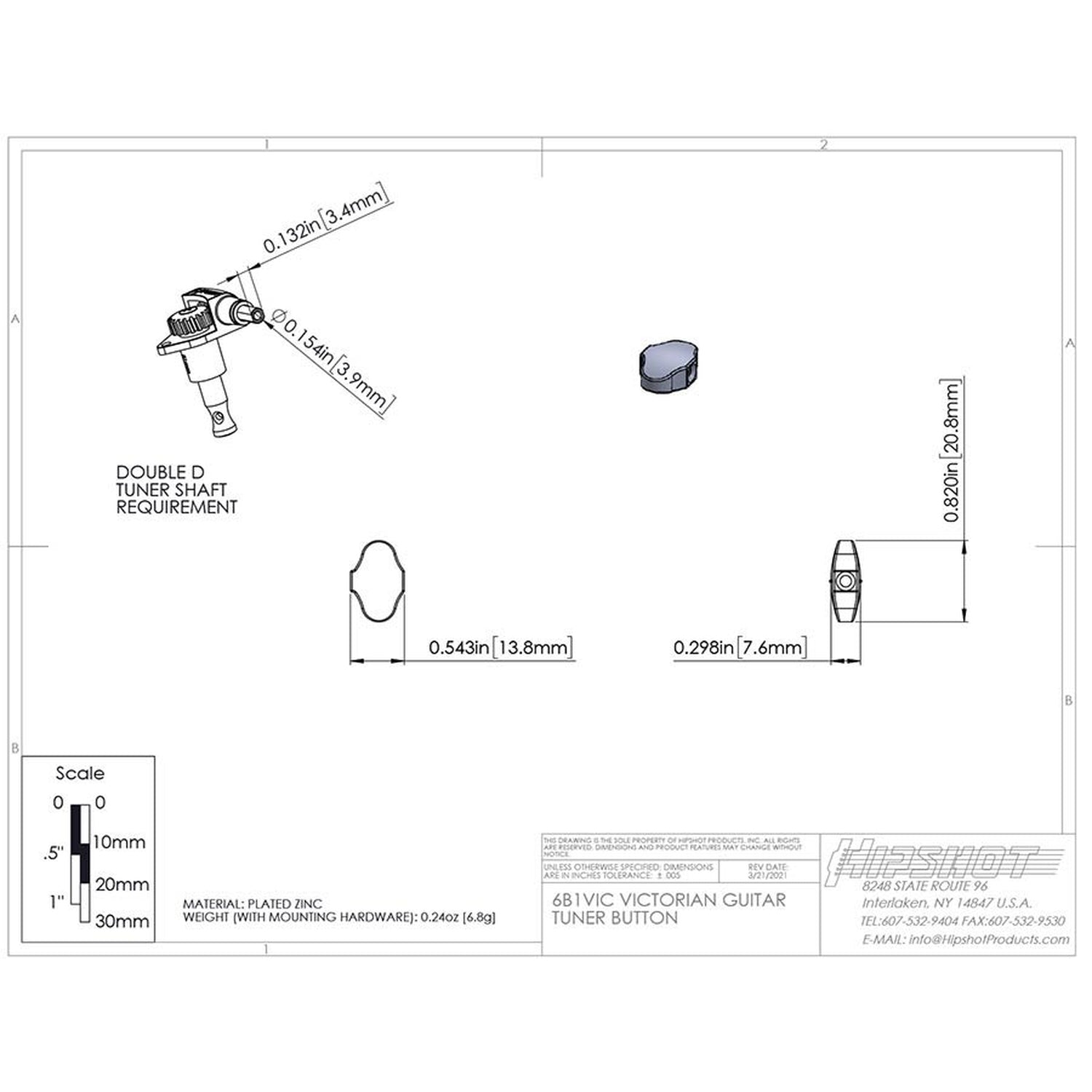 Hipshot HS6B1VICB viktorianischer Gitarrenstimmknopf, schwarz