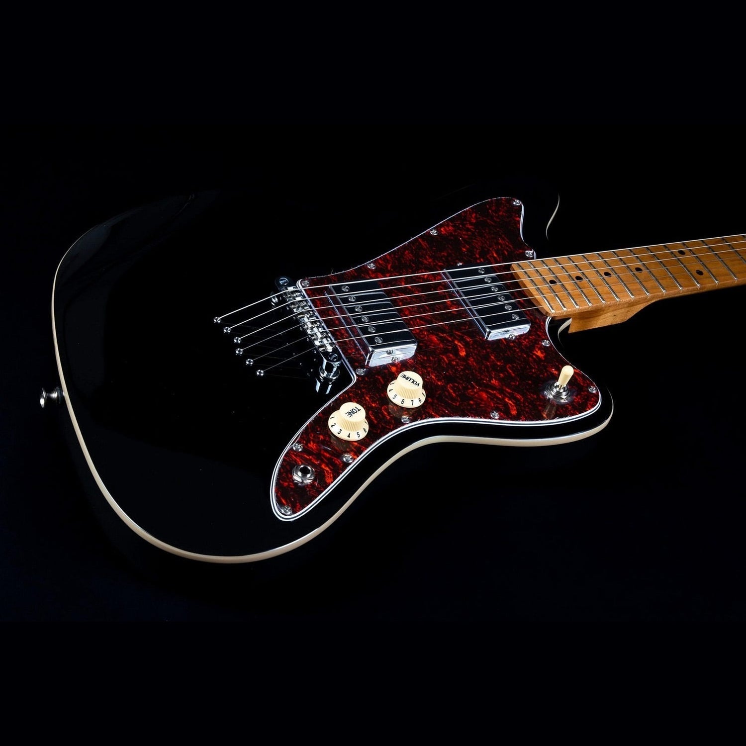 JET JJ-350 BK Offset-E-Gitarre HH Hardtail Gerösteter Ahorn Schwarz