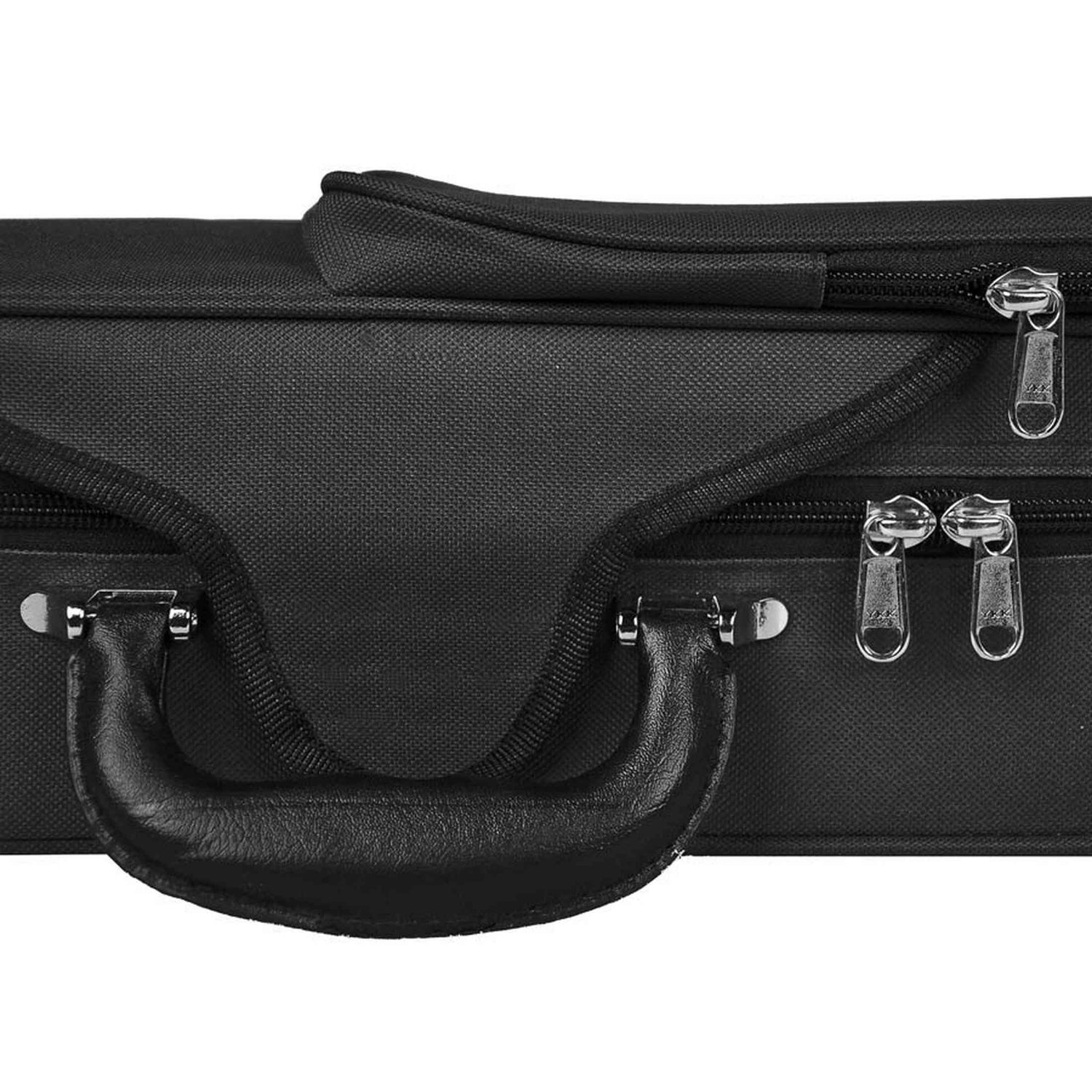 De binnenzijde is afgewerkt met zwart pluche en voorzien van twee strijkstokhouders. Kleine accessoires berg je op in het afsluitbare compartiment en in het extra vak is ruimte voor bladmuziek of een tablet. De YKK ritssluitingen zijn sterk en soepel in gebruik. Met twee verstelbare rugriemen en een stevig handvat vervoer je de viool comfortabel.